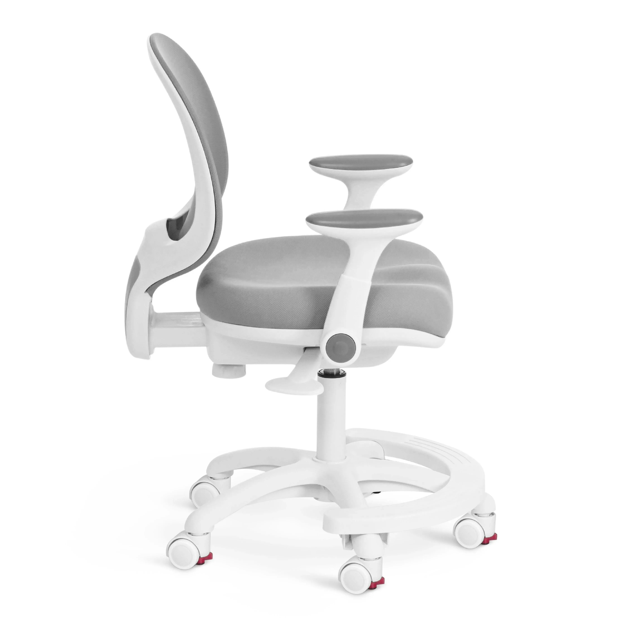 Оригинальный дизайн детского компьютерного кресла RAINBOW/Рейнбоу создаст в вашем доме атмосферу комфорта и уюта. Модель в цвете серый прекрасно впишется в интерьер комнаты школьника. Полипропиленовая крестовина диаметром 600 мм с подставкой под ноги устойчива, прочна и имеет долгий срок службы. Модель оснащена газлифтом 3 класса. Высококачественные ролики с отключаемой функцией блокировки дополнительно прорезинены для предотвращения повреждения напольного покрытия. Такие колесики отлично подходят для использования на паркете и ламинате. Откидные пластиковые подлокотники с декоративными накладками в цвет обивки, механизм регулировки глубины посадки и высоты сиденья помогут принять комфортную позу и снять напряжение с позвоночника. Сетчатая спинка обеспечит вентиляцию, что очень важно в летний период времени. Эргономичное сиденье с мягким наполнителем из высокоэластичного пенополиуретана высокой плотности не деформируется со временем, не накапливает пыль, хорошо пропускает воздух и отводит влагу. Детское мягкое кресло обито износостойкой мебельной тканью, выдерживающей 50 000 циклов на истирание по Мартиндейлу. Такой материал не требует специального ухода, обладает отличными эксплуатационными качествами. Кресло компьютерное выглядит стильно и необычно, станет ярким акцентом в комнате школьника, будет радовать своей долговечностью, красотой и практичностью продолжительное время. Максимальная нагрузка 90 кг. Модель поставляется в разобранном виде. Необходима несложная сборка по прилагаемой инструкции.