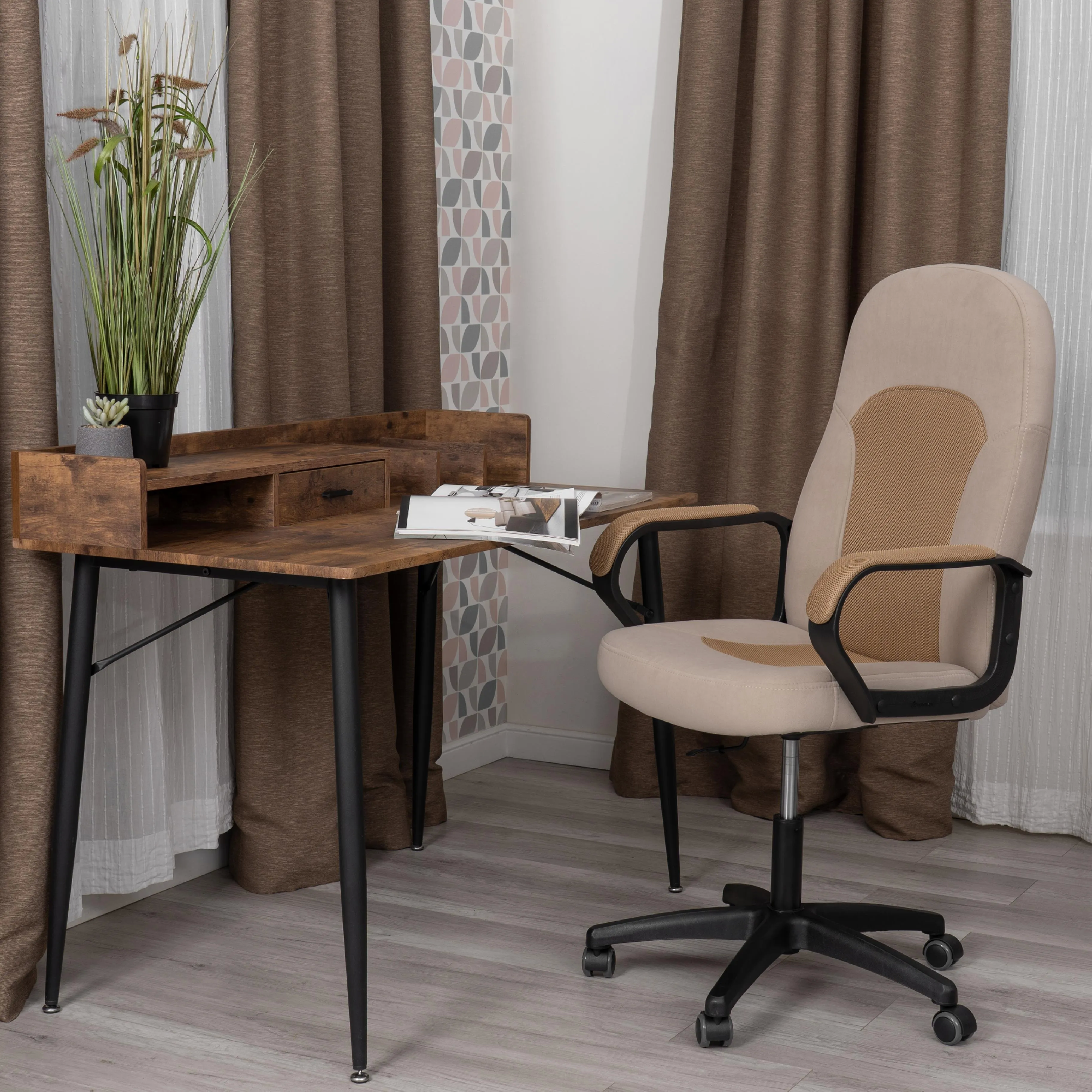 Офисное кресло PARMA — это элегантный и современный элемент, который эффективно дополняет любой интерьер. Отличаясь стильным дизайном, оно подходит как для руководителей, так и для обычных сотрудников. Кресло идеально подойдет как для офиса так для дома. Основные характеристики кресла PARMA: - Каркас: Изготовлен из прочной фанеры толщиной более 10 мм, что гарантирует надежность и долговечность. Этот материал экологически безопасен. - Наполнитель: Анатомический прогиб и мягкое сиденье с наполнителем из пенополиуретана (до 35 кг/м2) стандартной плотности не меняет форму на протяжении длительного времени, хорошо пропускает воздух, не накапливает пыль обеспечивают удобство при длительной работе. - Регулировка: Кресло оснащено механизмом подъема для индивидуальной настройки высоты. - Крестовина и подлокотники*: Черная полиамидная крестовина выглядит стильно и устойчива, а фиксированные мягкие подлокотники помогают снять напряжение с шеи и плеч. - Ролики: Бесшумные полиамидные ролики с прорезиненными вставками защищают напольное покрытие и подходят для использования на низковорсовых поверхностях. - Стандарты: Ролики и крестовина соответствуют стандарту BIFMA, а газлифты 3 класса выдерживают вес до 100 кг. - Обивка: : Экокожа и велюр выдерживают до 50 000 циклов по Мартиндейлу. Кресло PARMA поставляется в разобранном виде и требует простой сборки по прилагаемой инструкции. Кресло PARMA станет хорошим выбором для тех, кто ценит не только комфорт, но и стиль в рабочем пространстве.