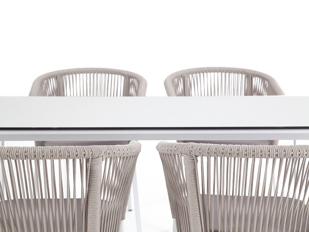 "Малага" обеденная группа на 6 персон со стульями "Марсель", каркас белый, роуп светло-серый
