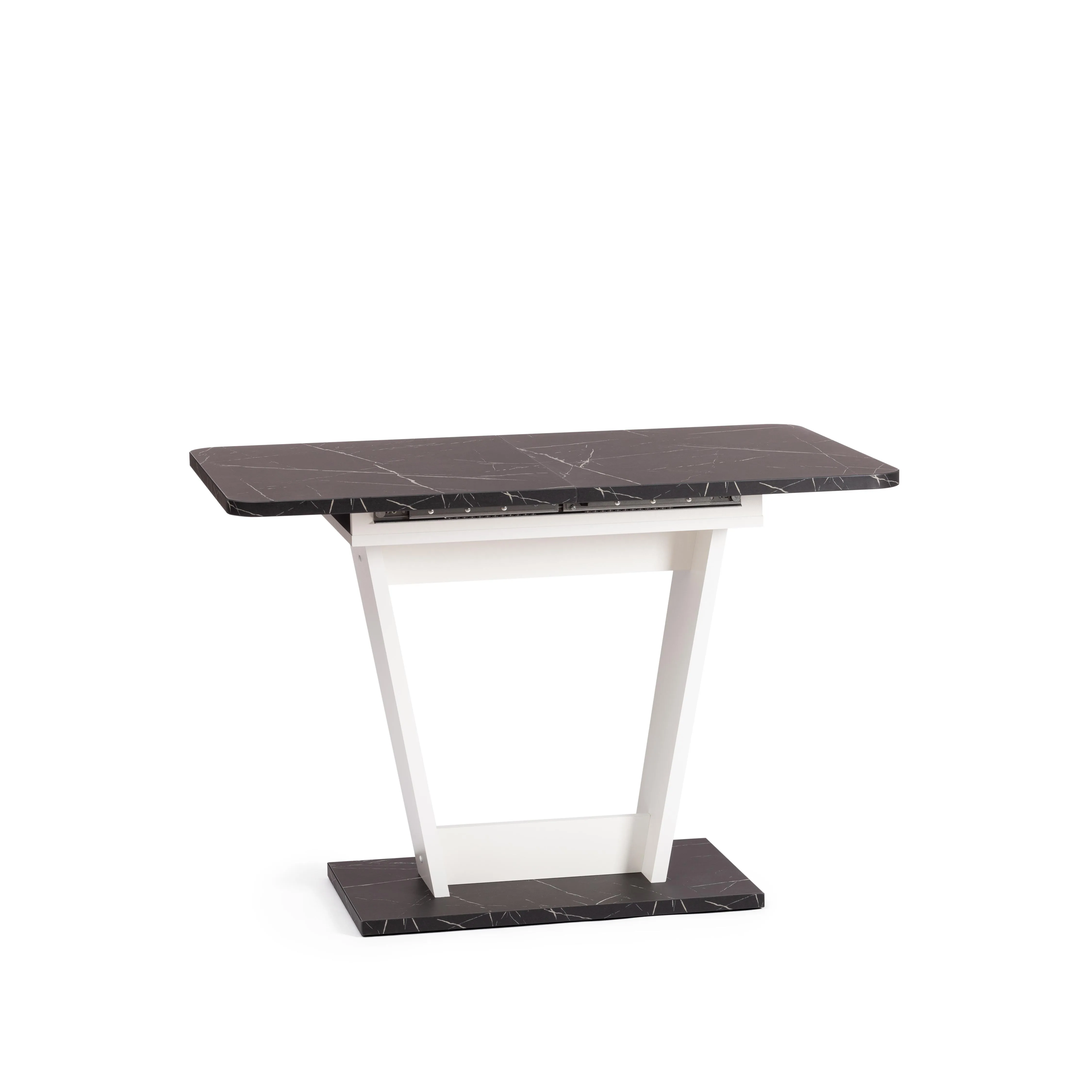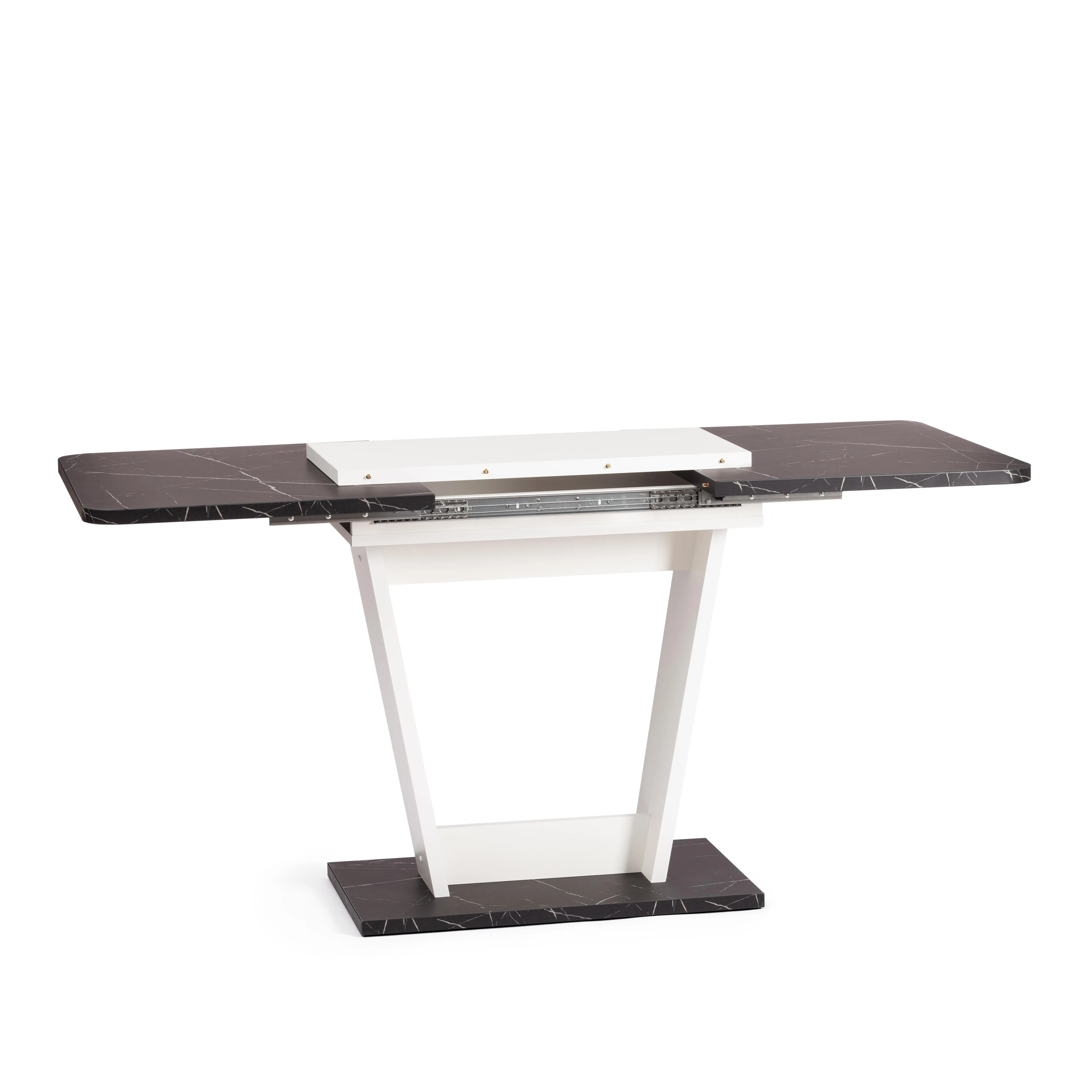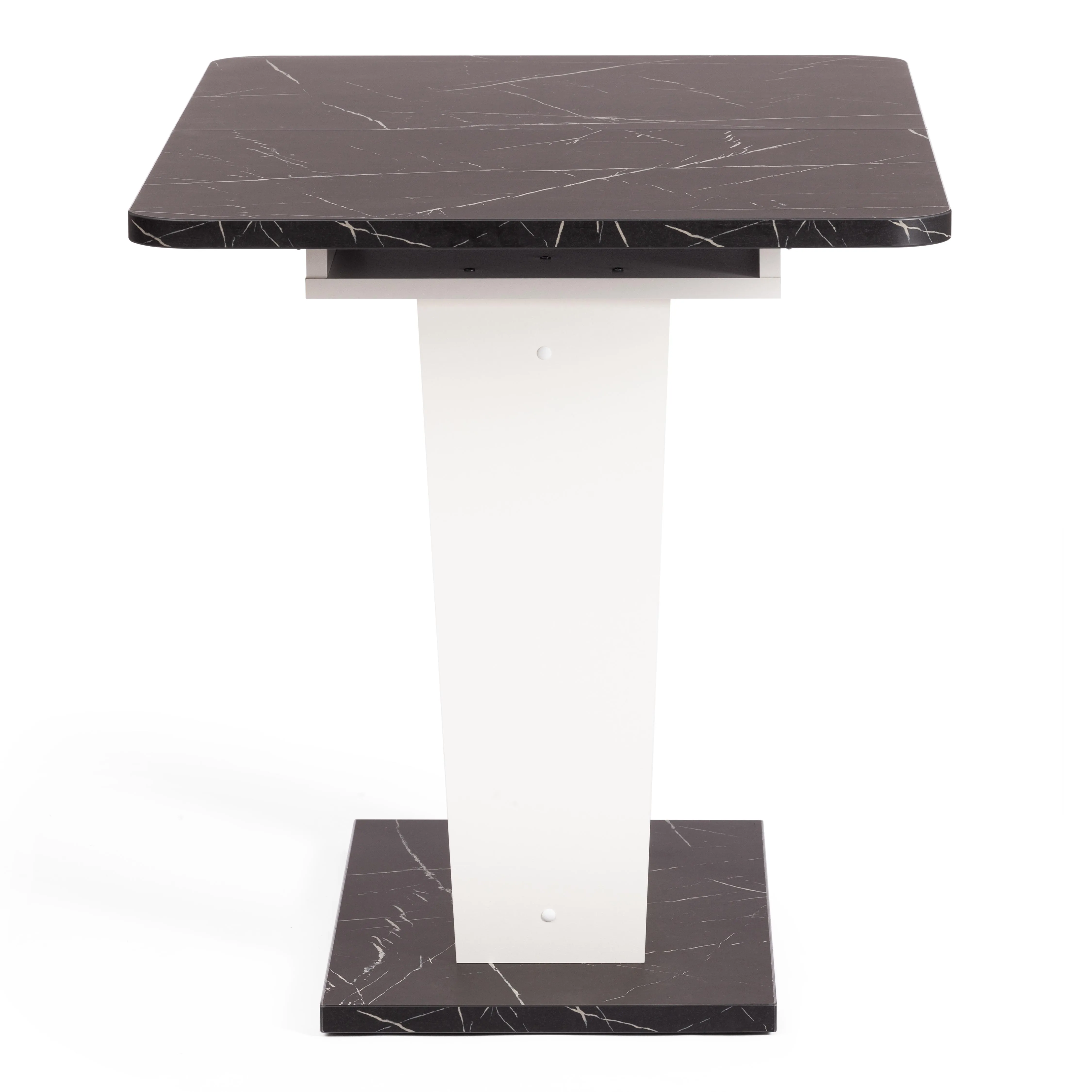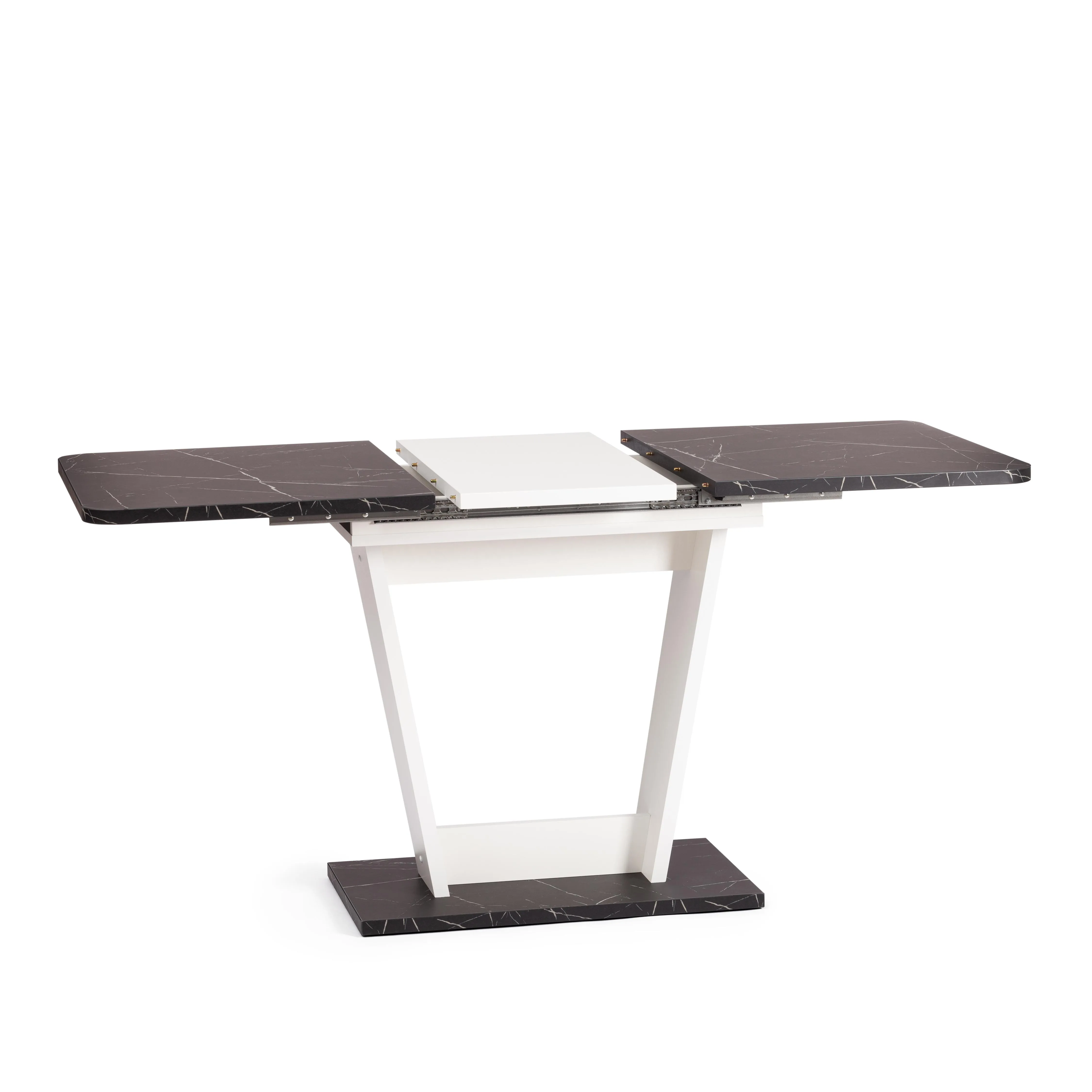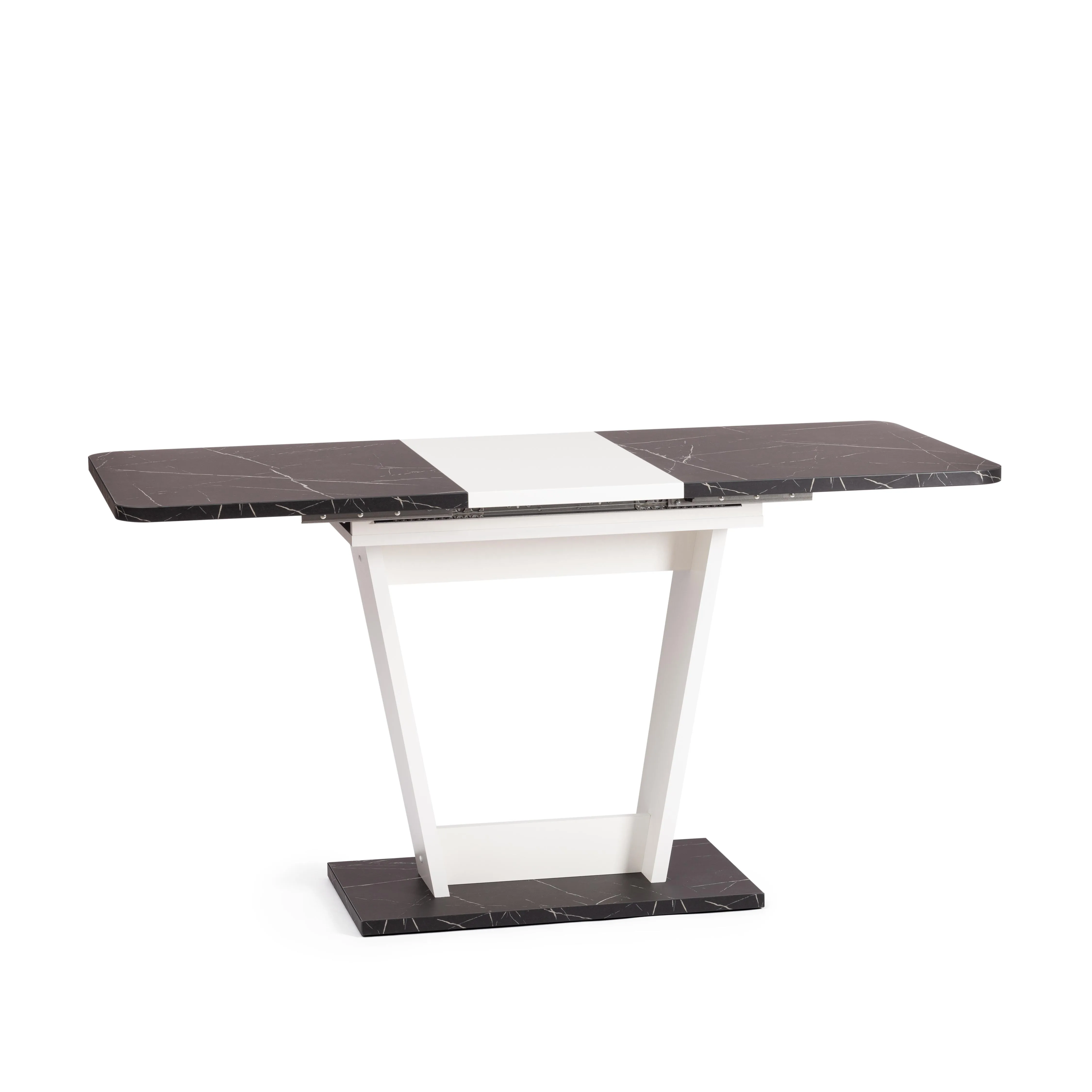 Визуально легкий стол-трансформер FOX украсит собой любую домашнюю обстановку. Большая столешница, оригинальная ножка-опора и удачное сочетание белого цвета и черного. Мрамор – идеальное решение для современного стильного интерьера. Размеры стола дают возможность с комфортом разместить от четырех до шести человек. Вставка стола убирается горизонтально в подстолье. Края оклеены прочной пластиковой кромкой толщиной 2 мм. ЛДСП толщиной 25 мм. Механизм раздвижения - синхронного типа со стопором. Стол FOX отлично подойдёт для гостиной, для кухни или для загородного дома. Модель очень проста в сборке, инструкция прилагается. Стол упакован в гофрокороб, в одну упаковку.