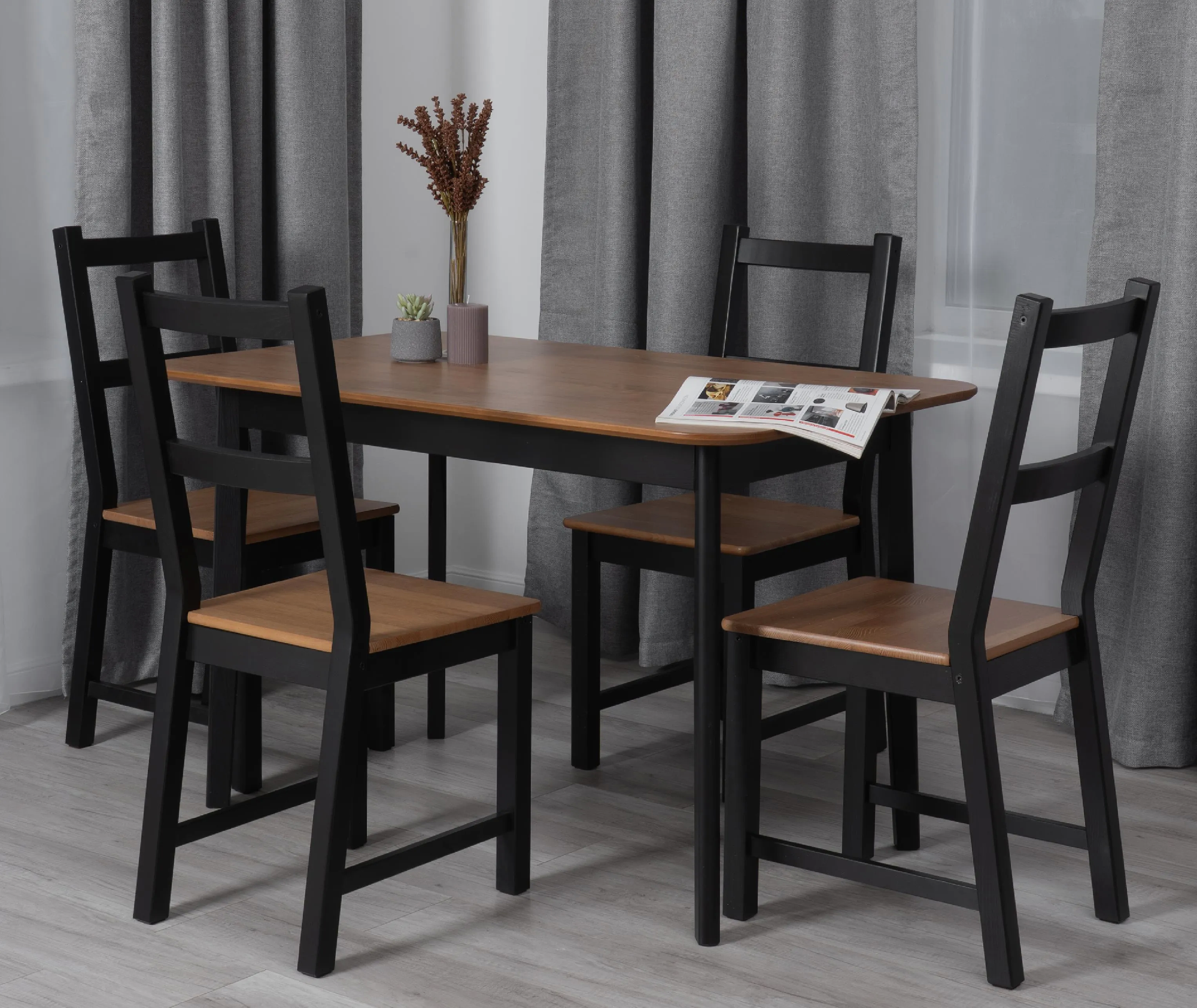 Обеденный стол Соната – это идеальное решение для создания стильного и уютного пространства в вашей кухне или столовой. Его прочный каркас и столешница из массива сосны обеспечивает надежность и долговечность, а гармоничное сочетание античного оттенка и черного цвета добавляет элегантности в общий интерьер. Этот стол прекрасно впишется как в городской квартире, так и в загородном доме, создавая уютную атмосферу в столовой, на кухне, террасе или веранде. Простота сборки делает его удобным в использовании: мебель поставляется в разобранном виде и комплектует по инструкции, позволяющей собрать стол без лишних усилий.