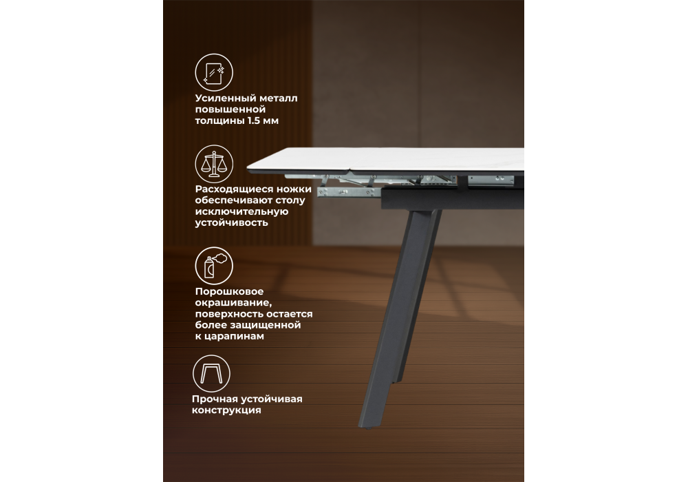 Керамический стол Норман - представляет собой стильное и удобное решение для вашего интерьера. Цвет товара - белый, что позволяет выбрать оптимальное решение под ваш стиль и предпочтения. Каркас изделия - металл, обеспечивает прочность и долговечность конструкции, при этом сохраняя легкость и изящество дизайна.