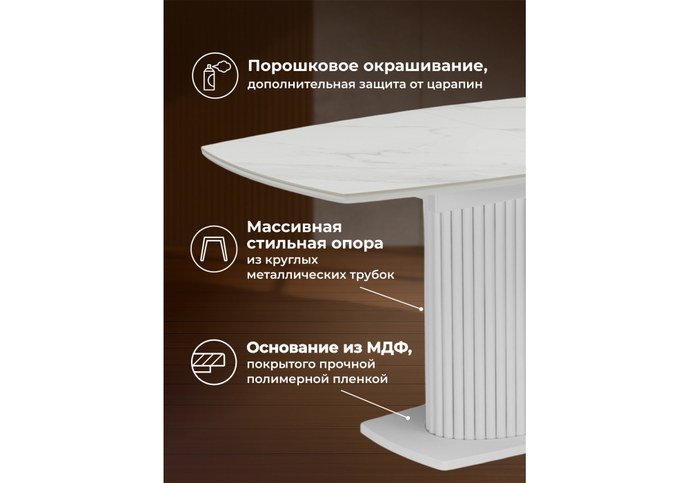 Керамический стол Фестер 140(180)х80 - представляет собой стильное и удобное решение для вашего интерьера. Цвет товара - белый, что позволяет выбрать оптимальное решение под ваш стиль и предпочтения. Каркас изделия - металл, обеспечивает прочность и долговечность конструкции, при этом сохраняя легкость и изящество дизайна. Благодаря своей уникальности товар легко впишется в любой интерьер и станет отличным дополнением к вашему пространству.