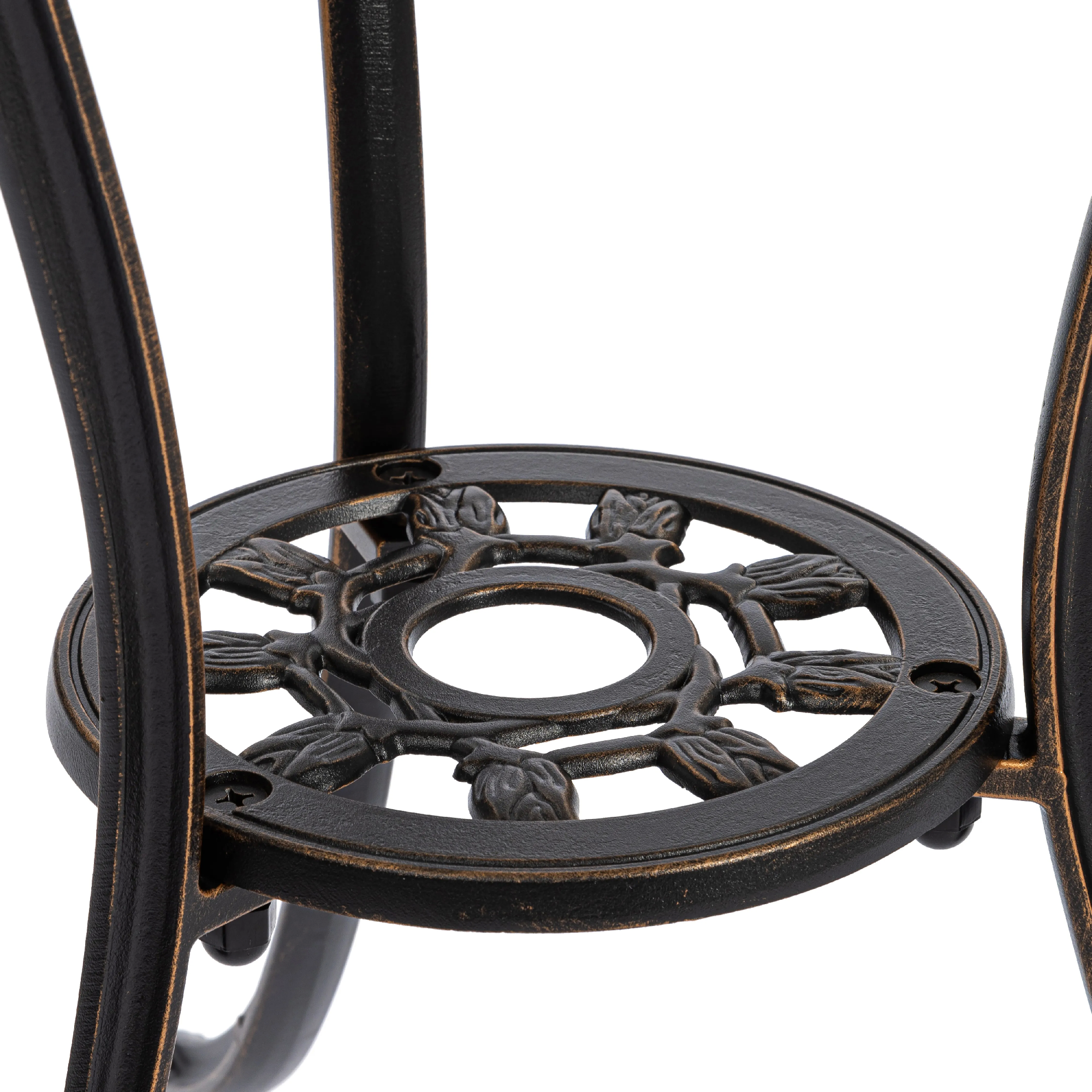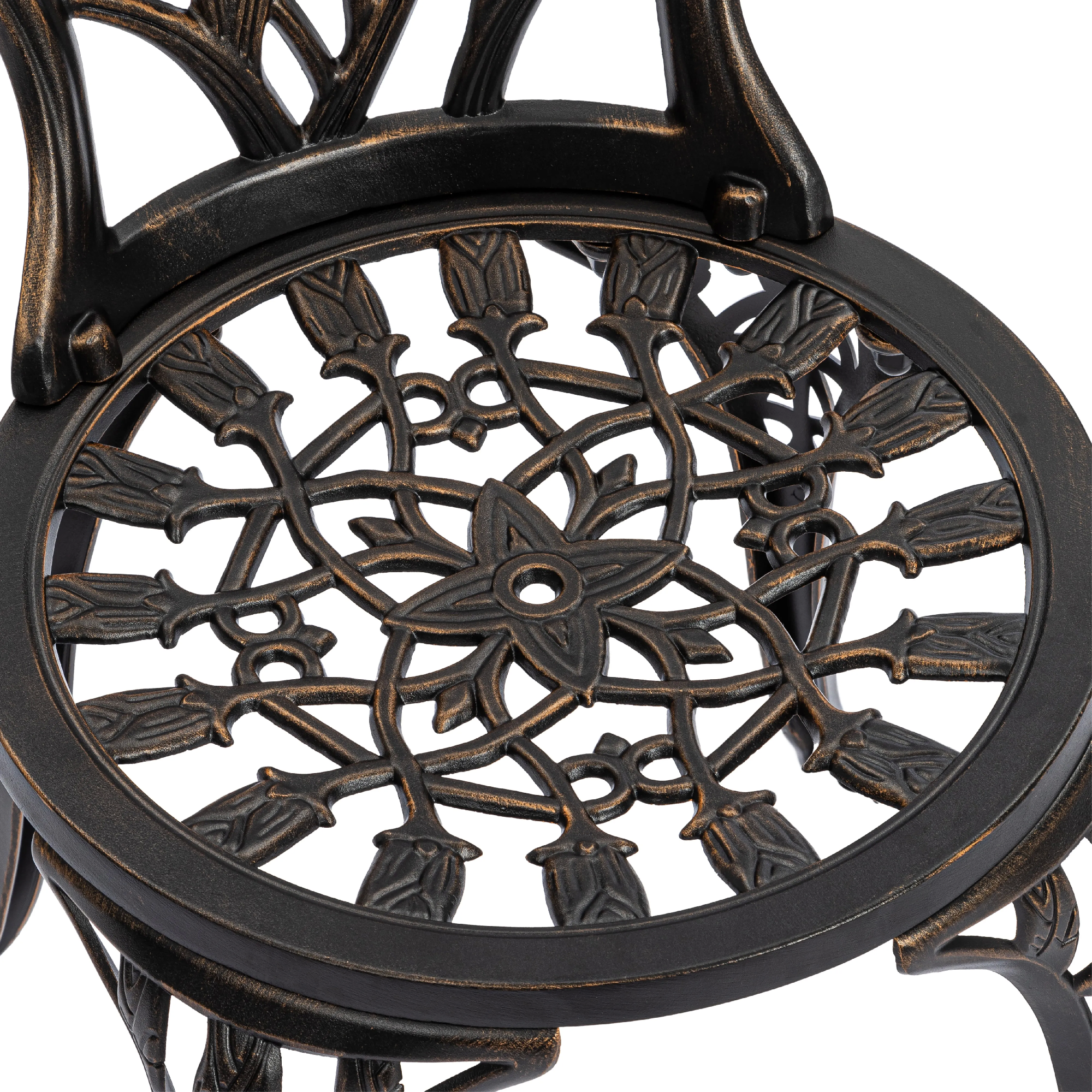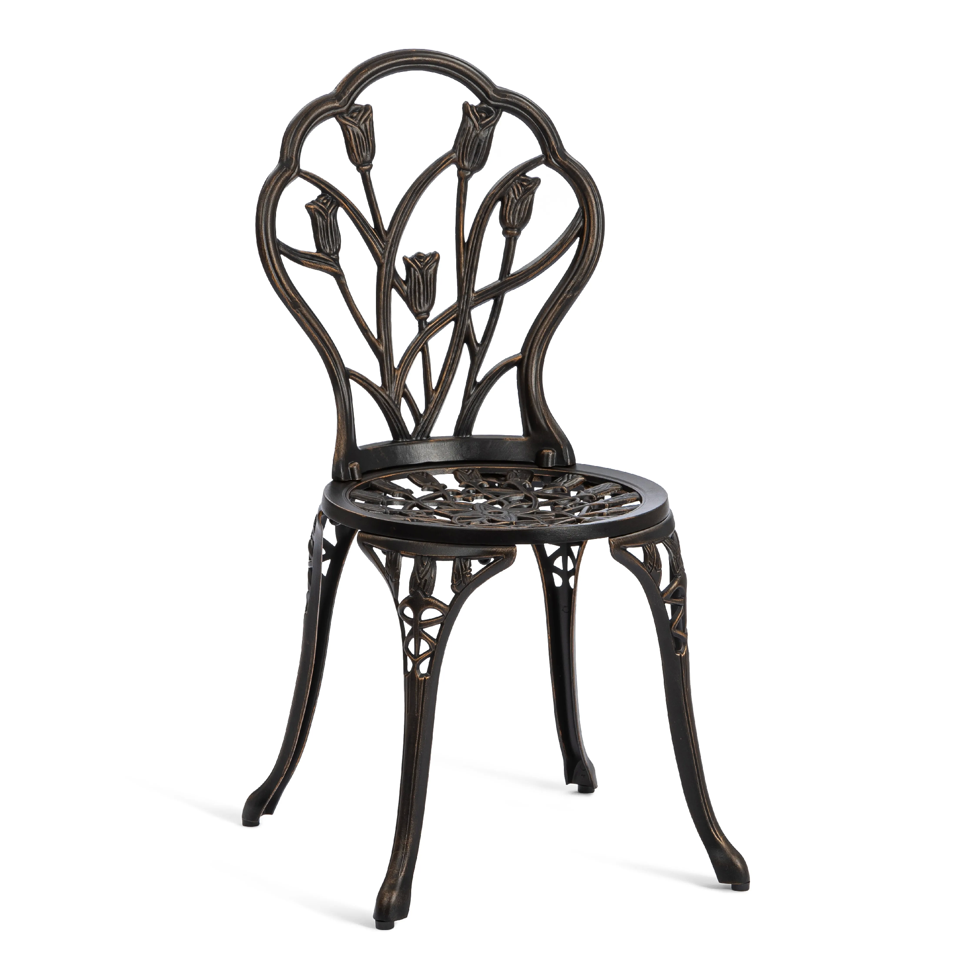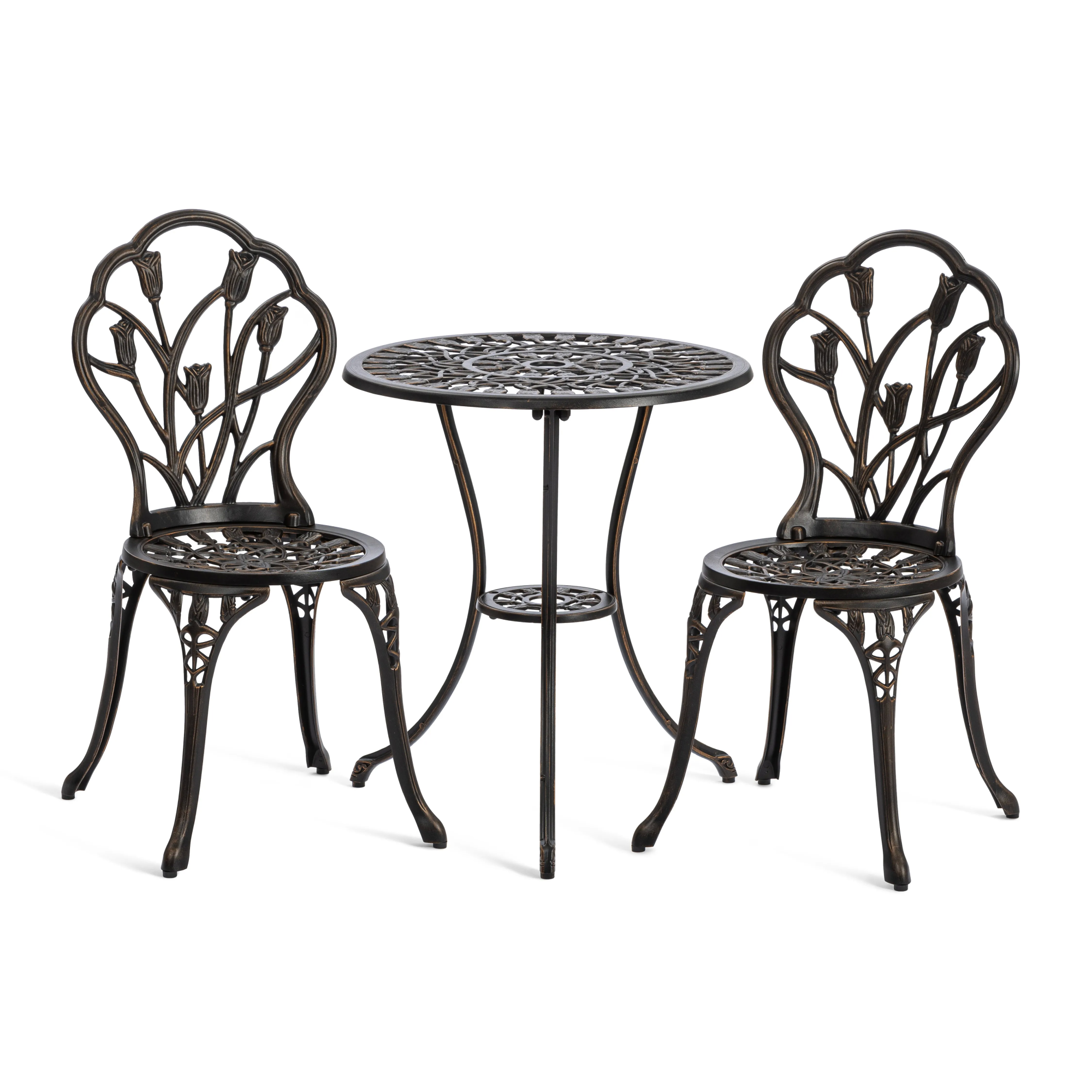 Комплект Waltz of Flowers/ Вальс Оф Флауерс — Ваш Оазис Комфорта и Красоты! Мечтаете об уютном уголке для отдыха на свежем воздухе, но пространство ограничено? Комплект уличной мебели Waltz of Flowers Waltz of Flowers/ Вальц Оф Флауер — идеальное решение для балкона, террасы, лоджии или небольшого дворика. Компактные размеры и продуманная конструкция позволяют создать стильную зону отдыха даже на небольшой площади. Изящный стол — сердце вашего пространства В центре комплекта — элегантный и устойчивый столик с оригинальной конструкцией на трёх ножках. Такое решение обеспечивает надежную устойчивость даже на неровной поверхности. Миниатюрная нижняя полочка добавляет функциональности: здесь удобно разместить книгу, чашку кофе, смартфон или небольшой декоративный элемент. Кованые элементы придают столу утончённость, а прочный металлический каркас с защитным покрытием гарантирует долговечность и устойчивость к влаге, солнечным лучам и перепадам температур. Стулья с цветочным настроением Два стула с выразительным крупным цветочным орнаментом создают атмосферу романтики и уюта. Художественная ковка в виде цветочного узора выглядит легко и изящно, добавляя комплекту индивидуальность и декоративность. Стулья не только эстетичны, но и удобны — эргономичная форма спинки способствует комфортному отдыху. Прочная металлическая конструкция выдерживает значительные нагрузки и подходит для ежедневного использования на открытом воздухе. Практичность и долговечность Комплект садовой мебели отличается: устойчивостью к любым погодным условиям, прочной металлической конструкцией, износостойким защитным покрытием, простотой ухода, компактностью и функциональностью. Кованый комплект Waltz of Flowers/ Вальц Оф Флауер — это гармоничное сочетание эстетики, надежности и удобства. Идеальный выбор для тех, кто ищет стильную и компактную мебель для балкона, террасы или сада. Создайте свой уголок вдохновения и наслаждайтесь отдыхом каждый день! Комплект поставляется в разобранном виде, что обеспечивает удобство транспортировки и сборки.
