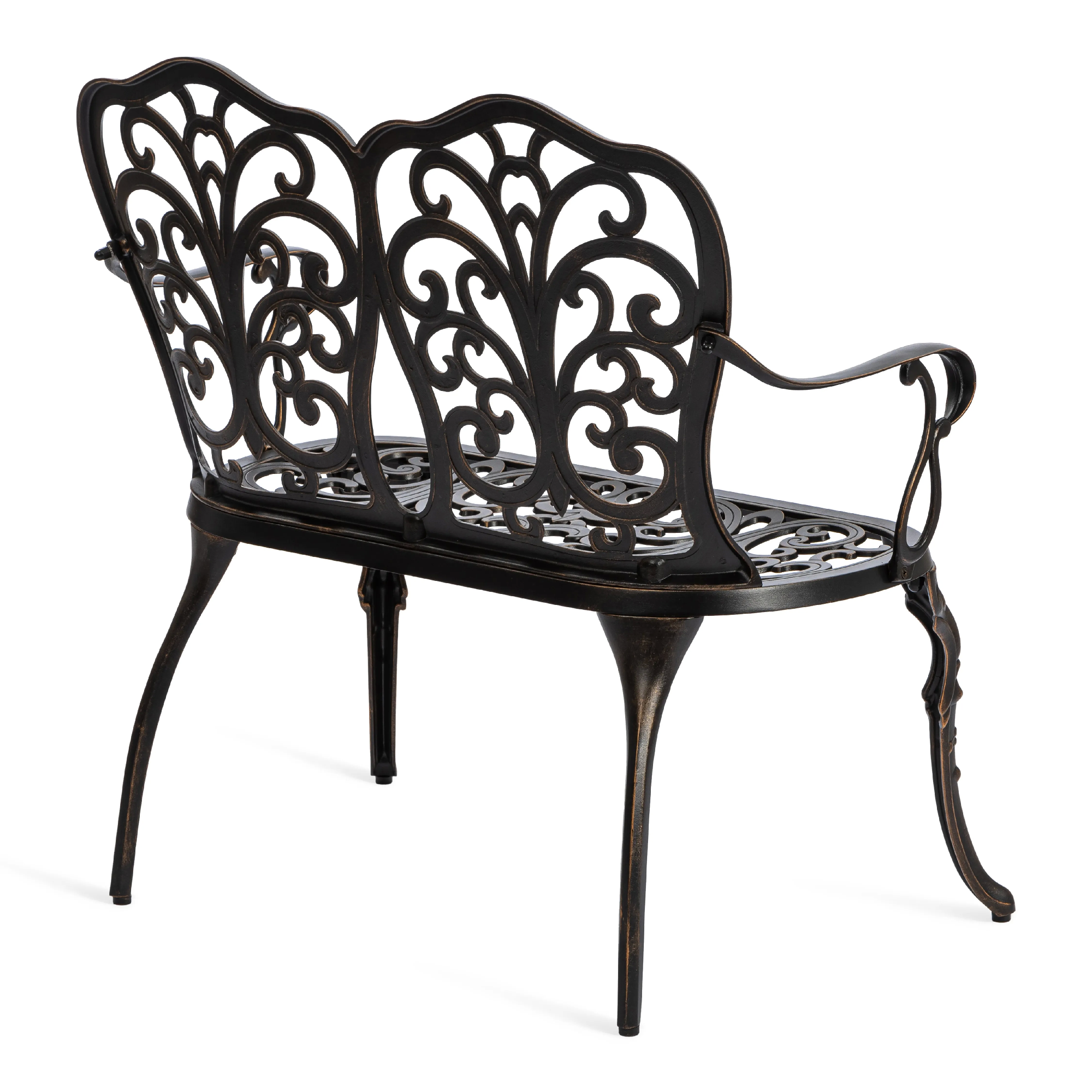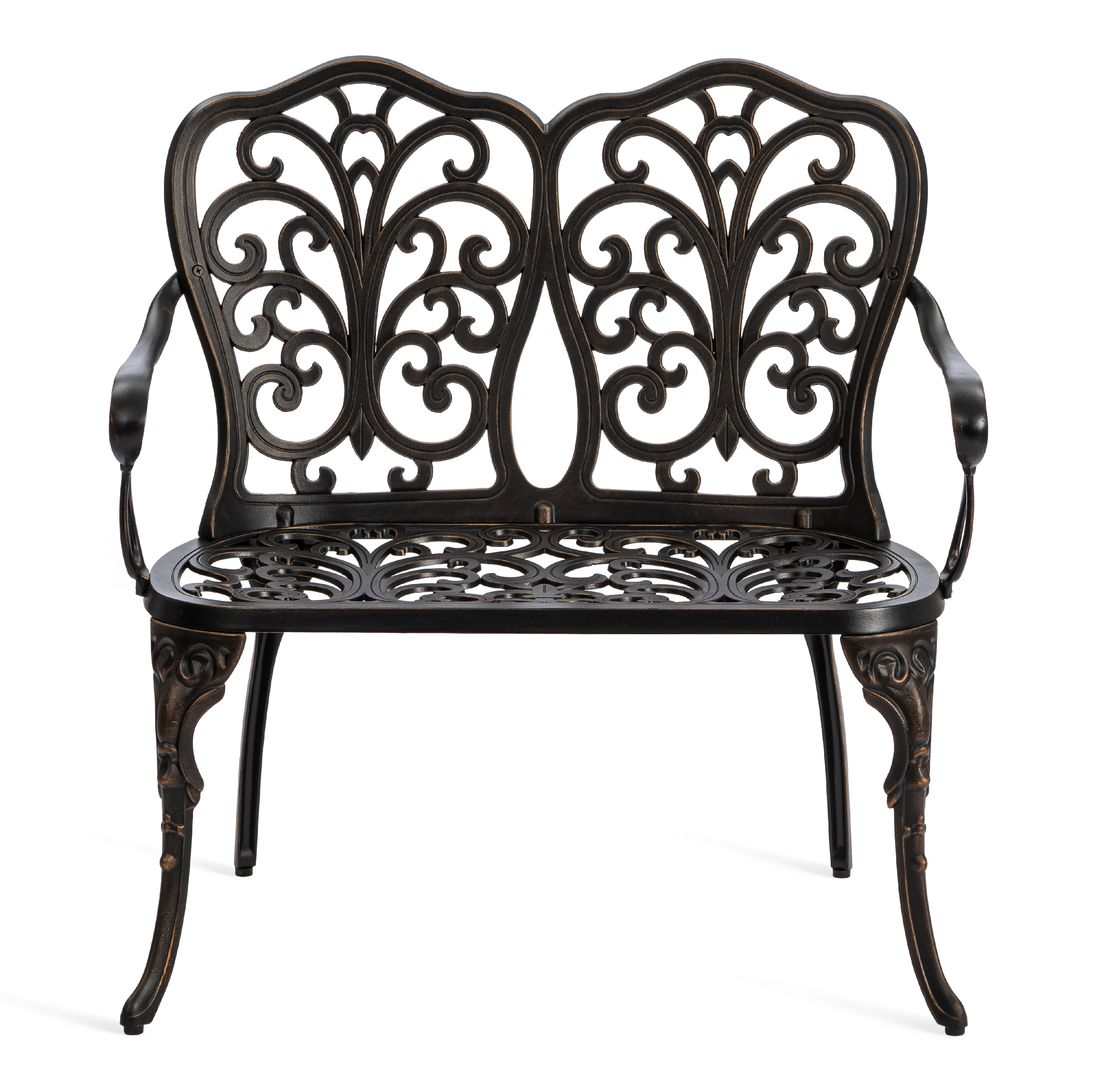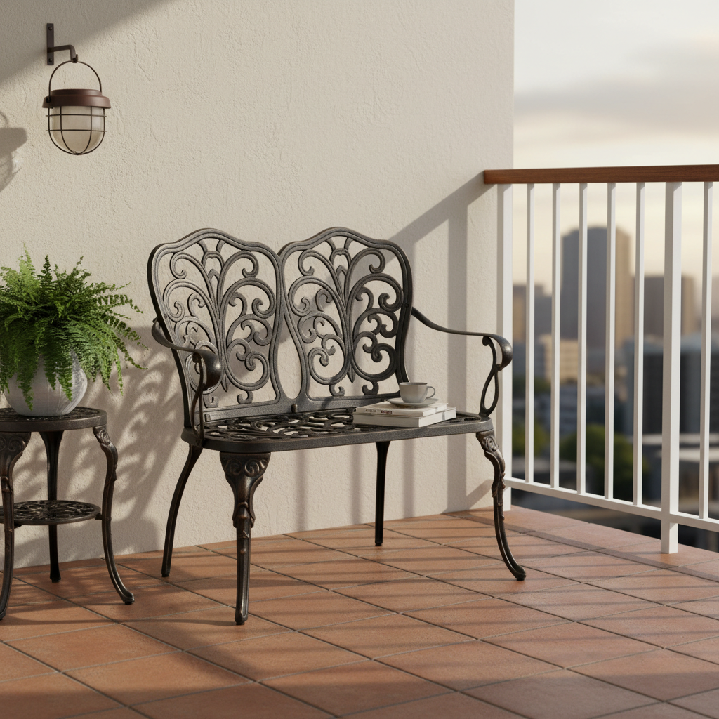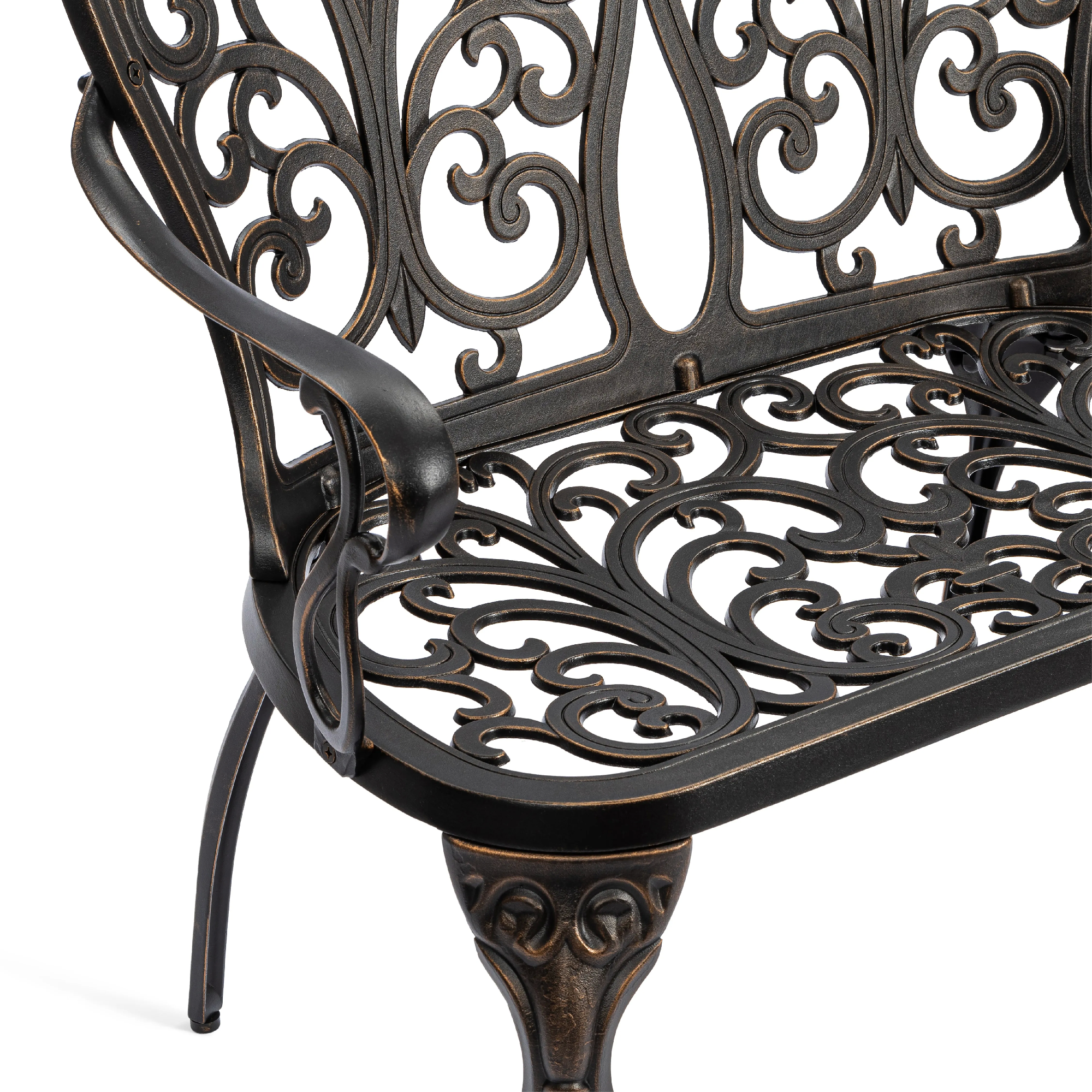 Скамья Symphonie/Симфония — элегантность прованса в вашем саду Изящная садовая скамья Symphonie (Симфония) станет настоящим украшением приусадебного участка, террасы или уютного уголка на балконе. Лёгкий французский шарм и декоративная художественная ковка придают модели утончённость и особую атмосферу романтики. Плавные витиеватые изгибы кованых узоров создают неповторимый облик изделия, подчеркивая его визуальную лёгкость, грациозность и изысканность. Благодаря гармоничным пропорциям скамья выглядит элегантно и органично вписывается в ландшафтный дизайн в классическом или прованском стиле. Удобная эргономичная спинка и изящные подлокотники обеспечивают комфортный отдых на свежем воздухе. Это идеальное место для неспешных бесед, чтения книги или наслаждения природой. Скамья изготовлена из литого алюминия — прочного и долговечного материала, устойчивого к коррозии, перепадам температур и повышенной влажности. Конструкция выдерживает значительные нагрузки и не требует сложного ухода, сохраняя первоначальный внешний вид на долгие годы. Преимущества скамьи Symphonie/Симфония: прочный каркас из литого алюминия, устойчивость к влаге и температурным перепадам, изящный дизайн в стиле прованс, удобная спинка и подлокотники, долговечность и простота ухода. Садовая скамья Symphonie/Симфония — это сочетание эстетики, надежности и комфорта для вашего загородного дома или дачи. Модель поставляется в разобранном виде, что обеспечивает удобство транспортировки и быструю сборку.