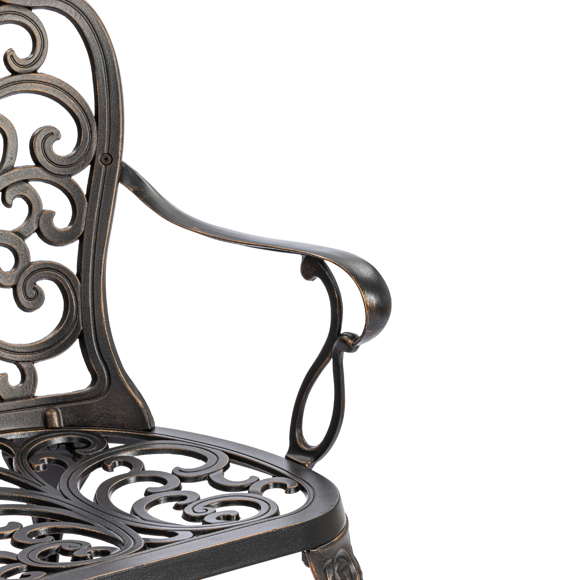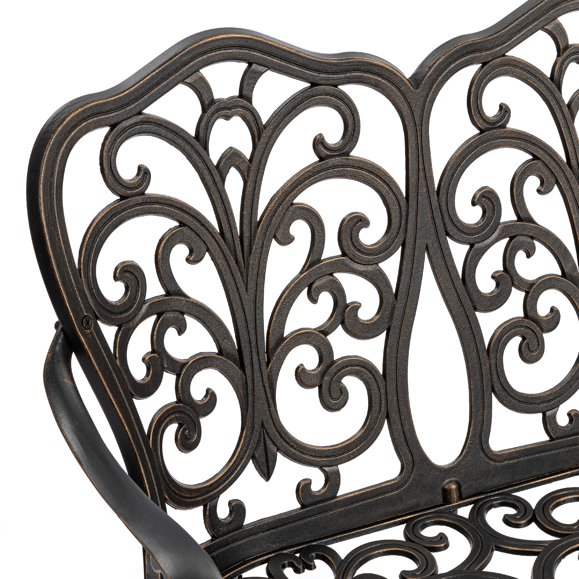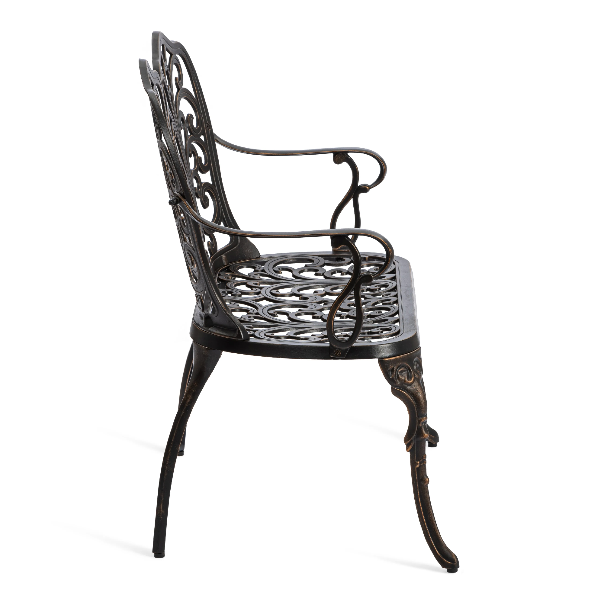 Скамья Symphonie/Симфония — элегантность прованса в вашем саду Изящная садовая скамья Symphonie (Симфония) станет настоящим украшением приусадебного участка, террасы или уютного уголка на балконе. Лёгкий французский шарм и декоративная художественная ковка придают модели утончённость и особую атмосферу романтики. Плавные витиеватые изгибы кованых узоров создают неповторимый облик изделия, подчеркивая его визуальную лёгкость, грациозность и изысканность. Благодаря гармоничным пропорциям скамья выглядит элегантно и органично вписывается в ландшафтный дизайн в классическом или прованском стиле. Удобная эргономичная спинка и изящные подлокотники обеспечивают комфортный отдых на свежем воздухе. Это идеальное место для неспешных бесед, чтения книги или наслаждения природой. Скамья изготовлена из литого алюминия — прочного и долговечного материала, устойчивого к коррозии, перепадам температур и повышенной влажности. Конструкция выдерживает значительные нагрузки и не требует сложного ухода, сохраняя первоначальный внешний вид на долгие годы. Преимущества скамьи Symphonie/Симфония: прочный каркас из литого алюминия, устойчивость к влаге и температурным перепадам, изящный дизайн в стиле прованс, удобная спинка и подлокотники, долговечность и простота ухода. Садовая скамья Symphonie/Симфония — это сочетание эстетики, надежности и комфорта для вашего загородного дома или дачи. Модель поставляется в разобранном виде, что обеспечивает удобство транспортировки и быструю сборку.