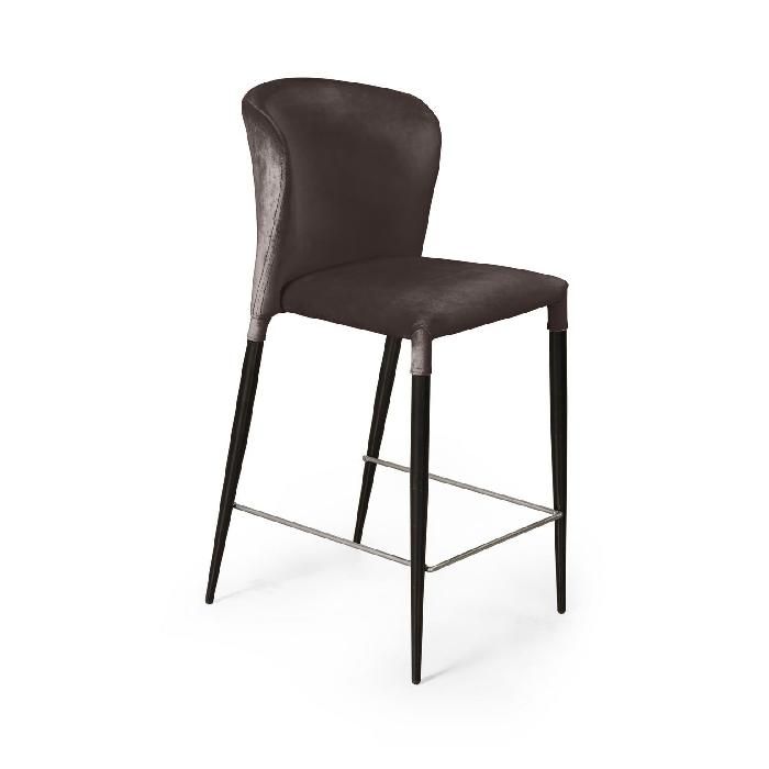 Изюминка полубарного стула Alert – невероятно тонкие металлические ножки черного матового цвета, излишне скошенные назад, как часть дизайнерской задумки. На ножках предусмотрены специальные пластиковые накладки, которые придают стулу дополнительную устойчивость и защищают пол от царапин.
