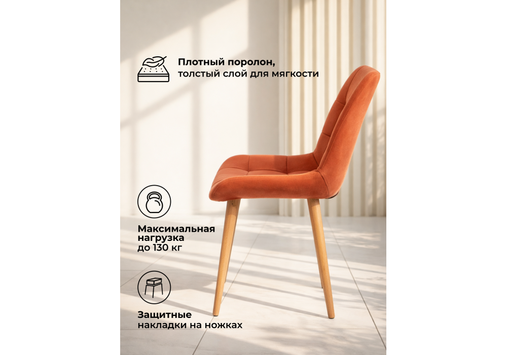Стул Челси - представляет собой стильное и удобное решение для вашего интерьера. Цвет товара - терракотовый, что позволяет выбрать оптимальное решение под ваш стиль и предпочтения. Каркас изделия - дерево, обеспечивает прочность и долговечность конструкции, при этом сохраняя легкость и изящество дизайна. Благодаря своей уникальности товар легко впишется в любой интерьер и станет отличным дополнением к вашему пространству.