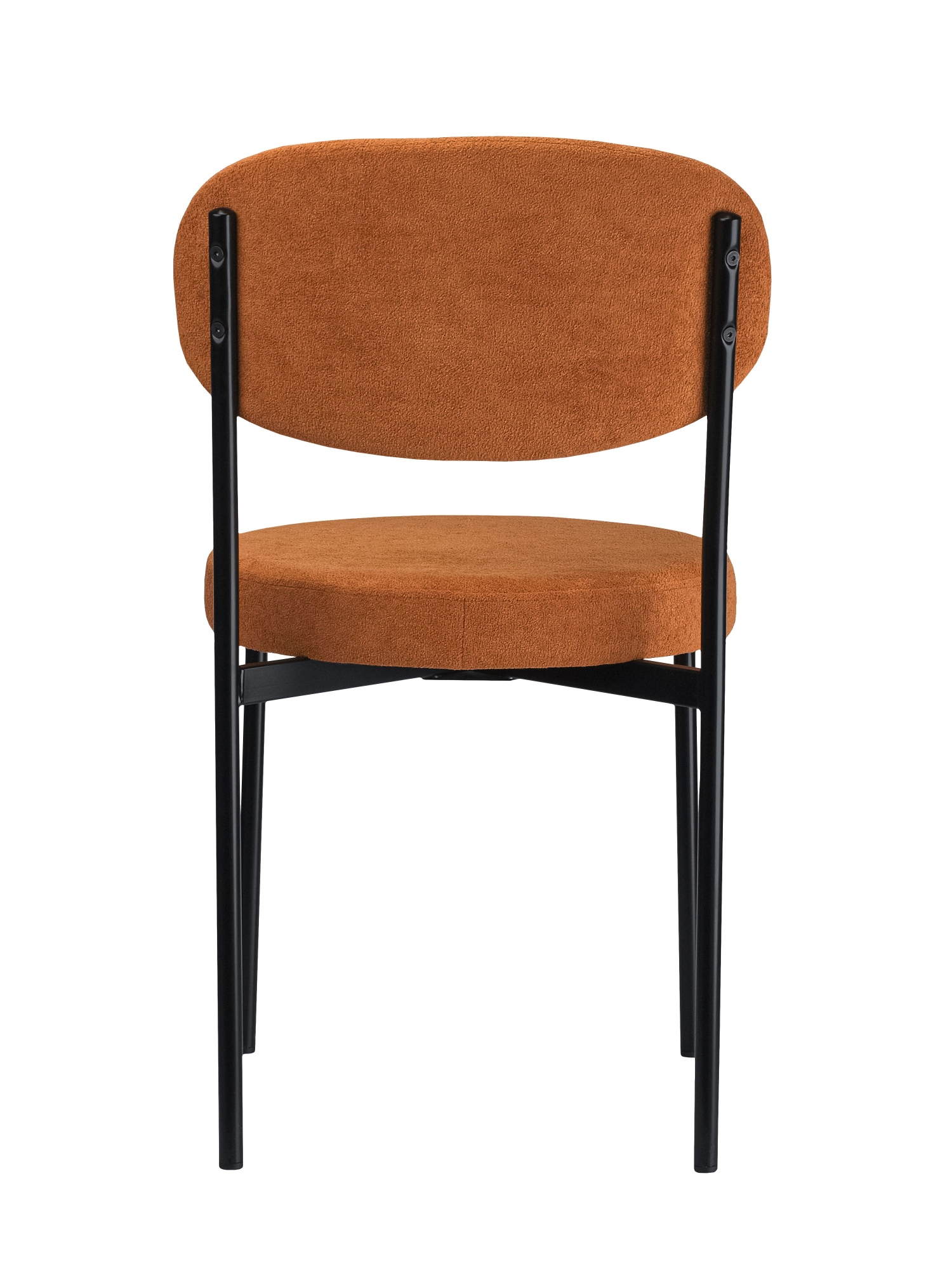 Прочная металлическая рама с тонкими линиями и воздушным дизайном обеспечивает долговечность и устойчивость, а дополнительная пластина усиливает место пересечения ножек для максимальной надёжности. Отдельное круглое сиденье и овальная спинка создают современный скандинавский образ, который дополняет интерьер в стиле минимализма.
