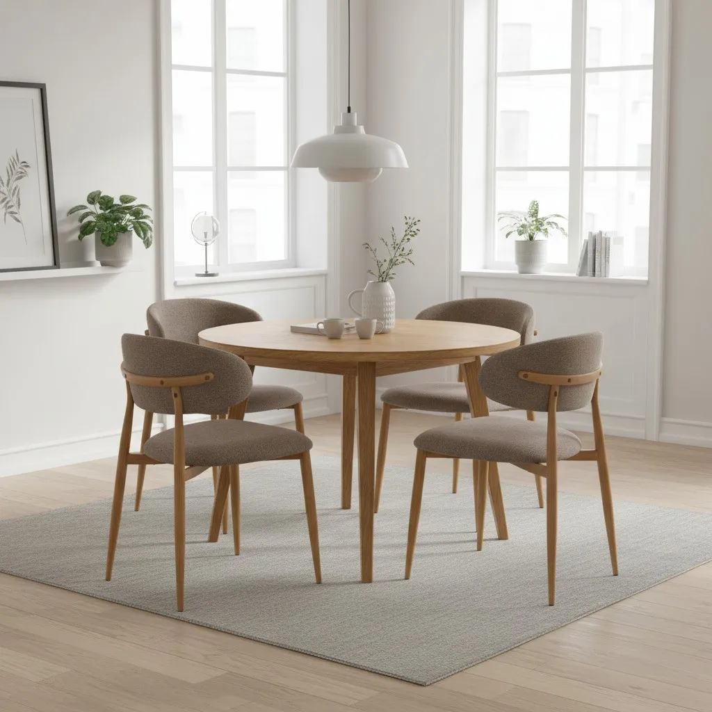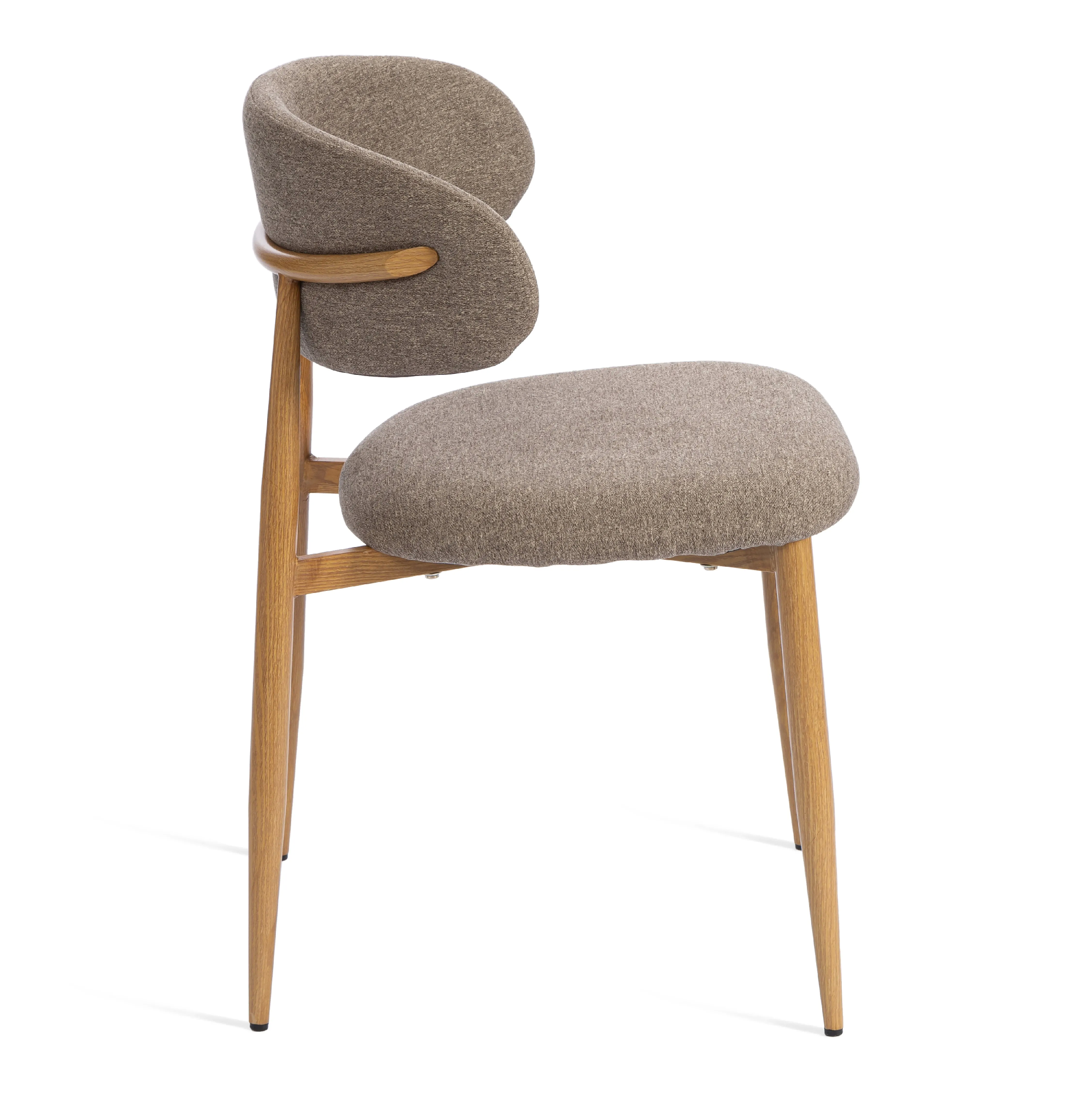 Представляем вашему вниманию обеденный стул Belsay/Белси – идеальное сочетание элегантности, комфорта и функциональности, которое преобразит любое пространство. Стул станет настоящим украшением вашей столовой, кухни, домашнего офиса или кафе. Идеально впишется в квартиру или загородный дом. Стул Belsay/Белси выполнен в современном минималистичном дизайне, который легко впишется в любой интерьер. Его плавные линии и изысканные материалы создают атмосферу уюта и стиля. Лаконичный силуэт стула сочетает в себе визуальную легкость и выразительность. Плавно изогнутая спинка и мягко скругленное сиденье формируют гармоничный и сбалансированный образ. Светло-коричневый текстурный велюр придает модели глубину, теплоту и тактильный комфорт, а металлические опоры цвета натуральное дерево отлично впишутся в любой интерьер. Слегка выдвинутые наружу заостренные опоры создают устойчивый и динамичный силуэт, делая стул стильным акцентом как в домашнем, так и в коммерческом пространстве. Обивка: Сиденье и плавно изогнутая спинка обиты высококачественной тканью велюр меланж светло-коричневого цвета. Этот материал не только приятен на ощупь, но и обладает высокой износостойкостью, что гарантирует долгий срок службы стула. Обивка из текстурного велюра придает стулу особую глубину и теплоту, делая его еще более привлекательным. Каркас и опоры: Каркас стула выполнен из прочного металла и имеет качественное покрытие, имитирующее натуральное дерево (термотрансферное) опор составляет 32 мм, а толщина металла – 1,0 мм, что гарантирует устойчивость и долговечность. На опорах стула предусмотрены регулируемые подпятники, которые предотвращают появление царапин на полу и обеспечивают устойчивость стула даже на неровных поверхностях. Каркас стула является разборным, что значительно упрощает его транспортировку и хранение. Эргономика: Конструкция стула продумана с учетом анатомических особенностей посадки. Плавно изогнутая спинка поддерживает естественное положение спины, снижая нагрузку при длительном сидении. Округлые контуры сиденья обеспечивают комфортную посадку без ощущения жесткости. Максимальная нагрузка: Стул выдерживает нагрузку до 120 кг, что подтверждает его прочность и надежность. Комплектация: Стулья продаются комплектами по 4 штуки, что удобно для обустройства обеденной зоны. Стул поставляется в разобранном виде и комплектуется подробной инструкцией по сборке, что обеспечивает быструю и удобную установку без лишних сложностей.