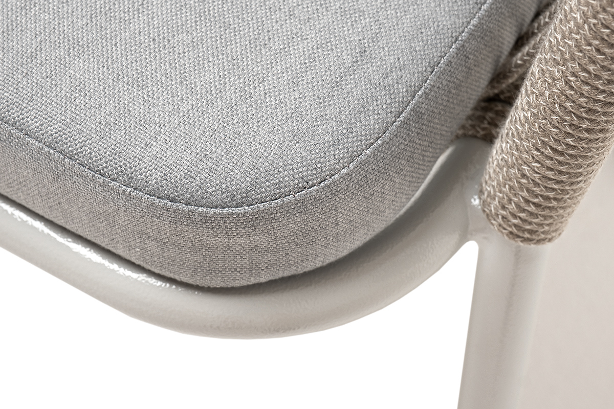 Подушка в комплекте со стулом выполнена из полиэстера 100% плотностью 300гр/м2 с влагоотталкивающей пропиткой. Это надежный и прочный материал, который легко очищается и устойчив к неблагоприятным погодным условиям.