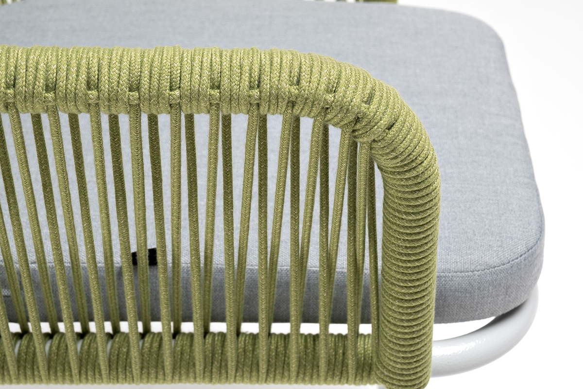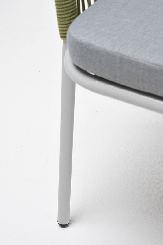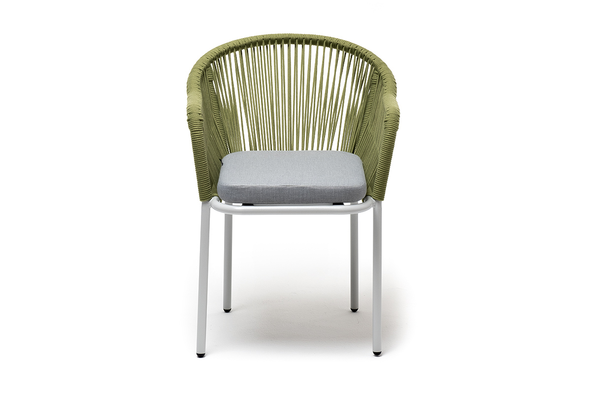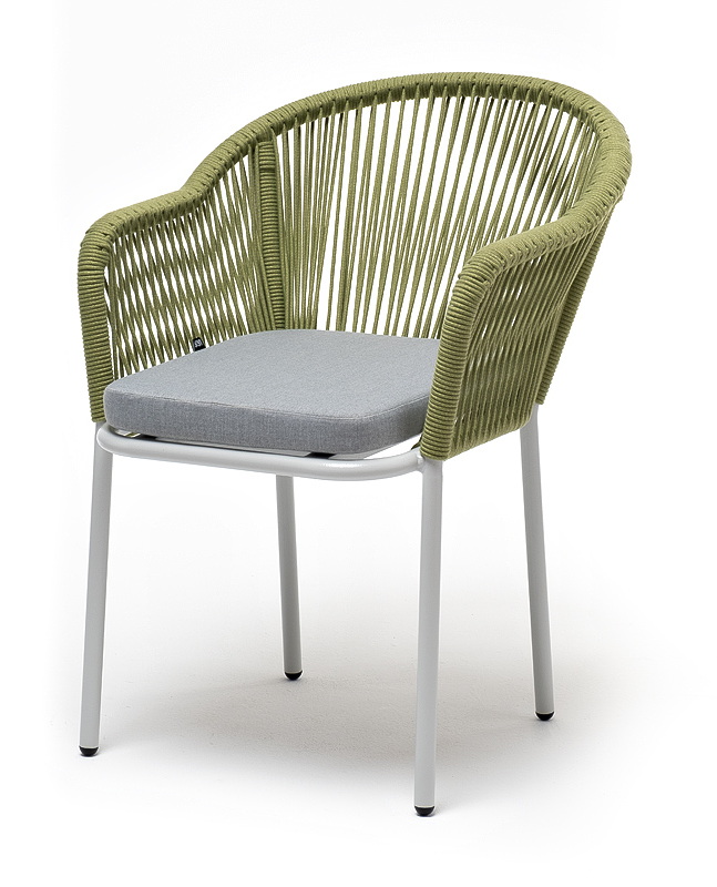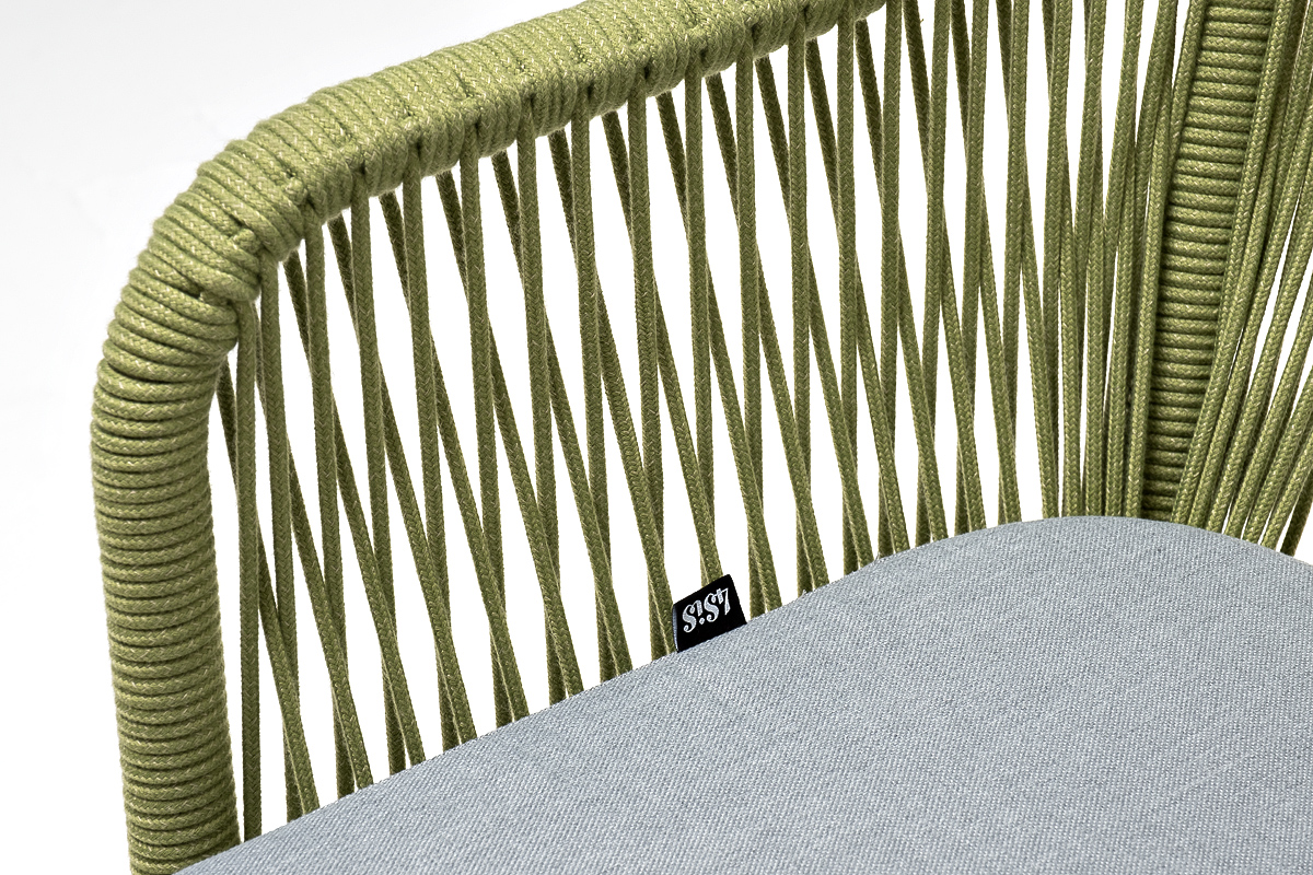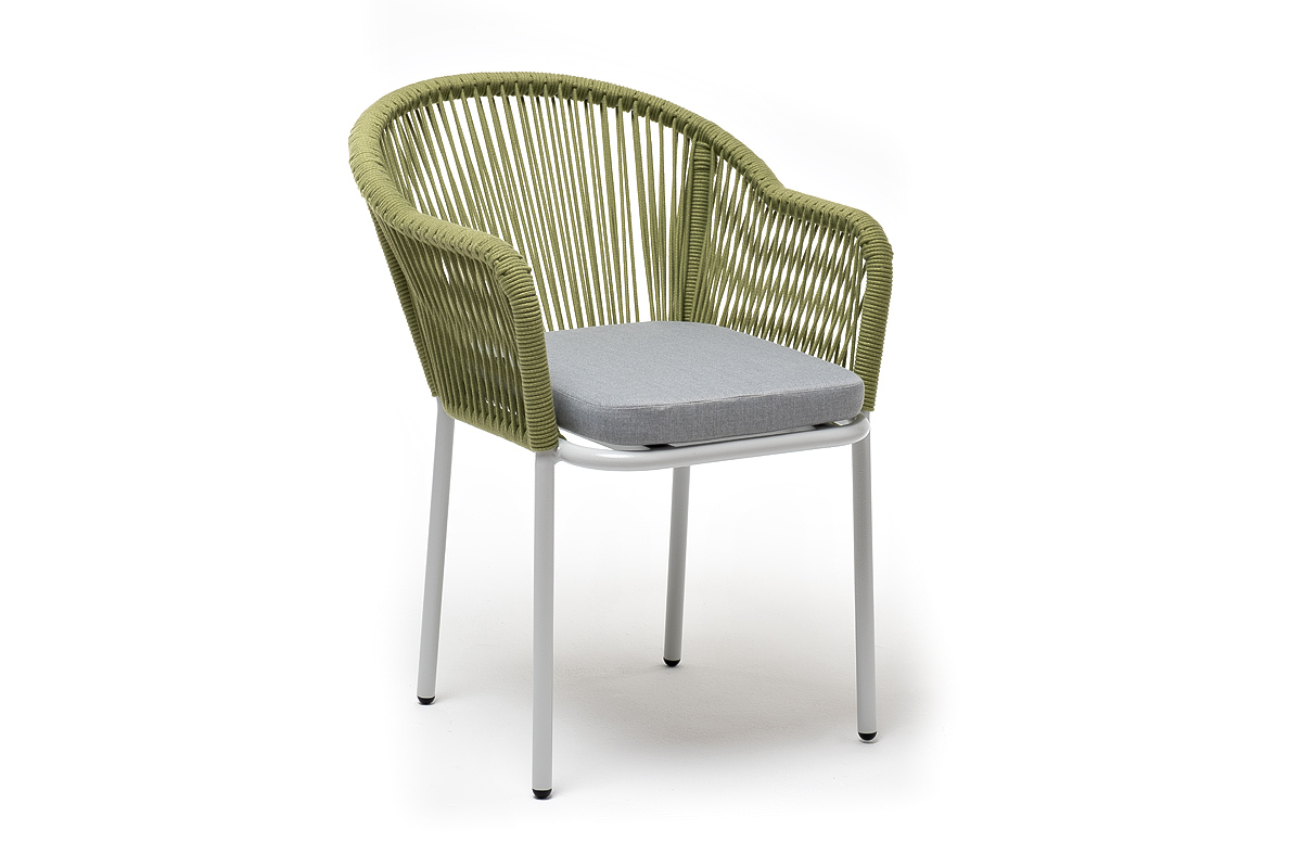 Стальной каркас гарантирует прочность и надежность, а плетение из эластичных лент высокопрочных полиэфирных волокон создает удобное и уютное сидение. Цвет оплетки - салатовый меланж.