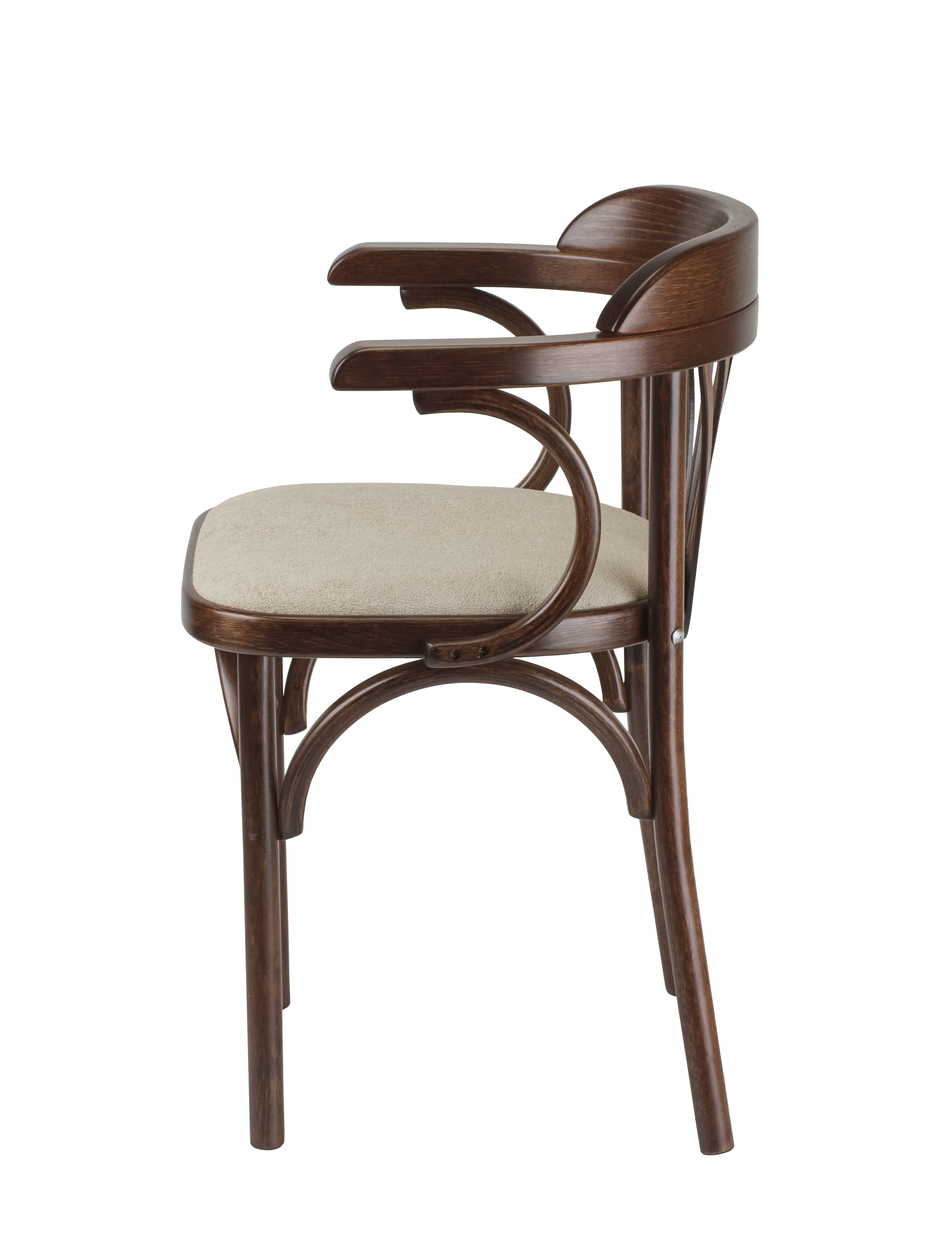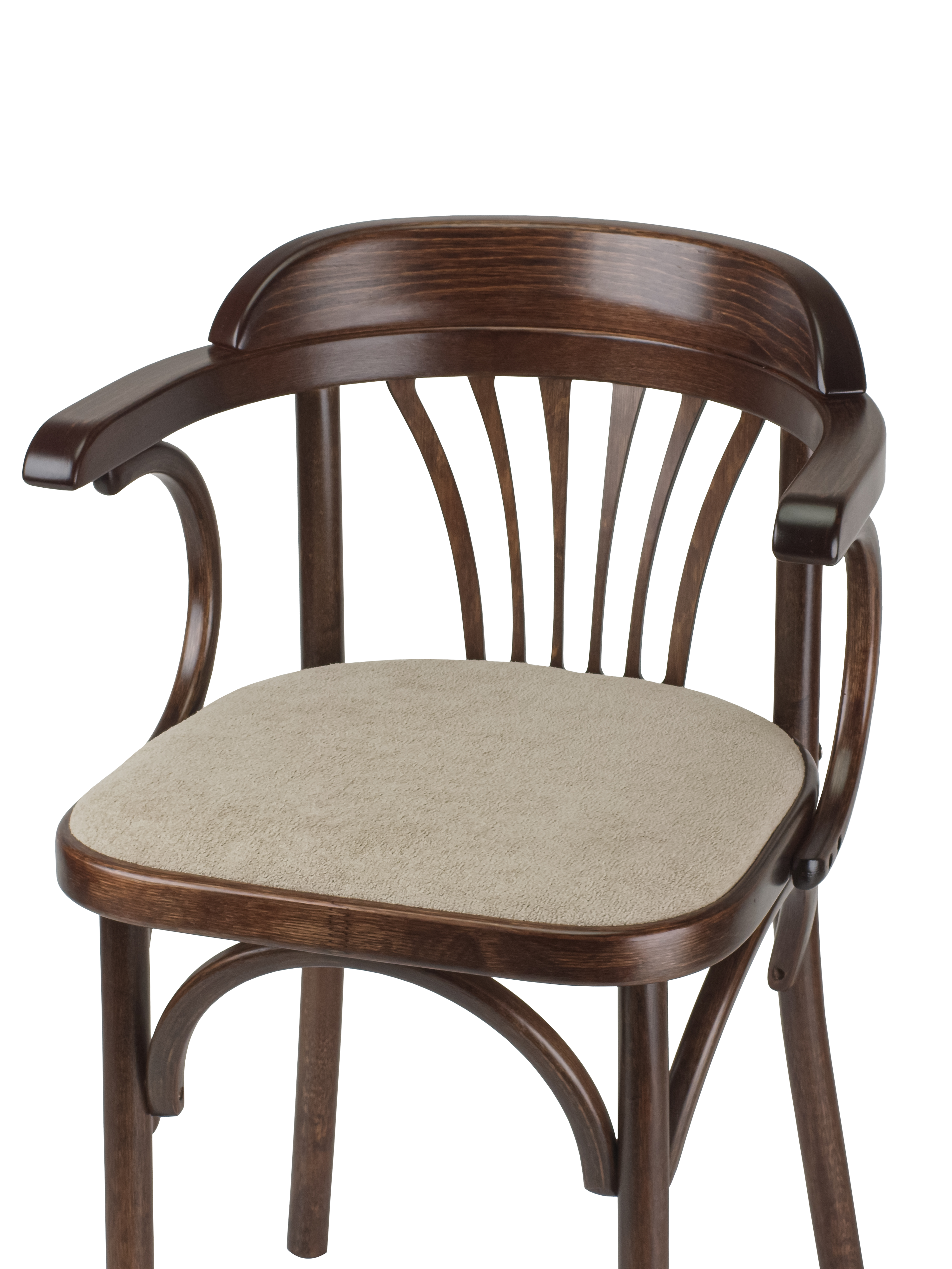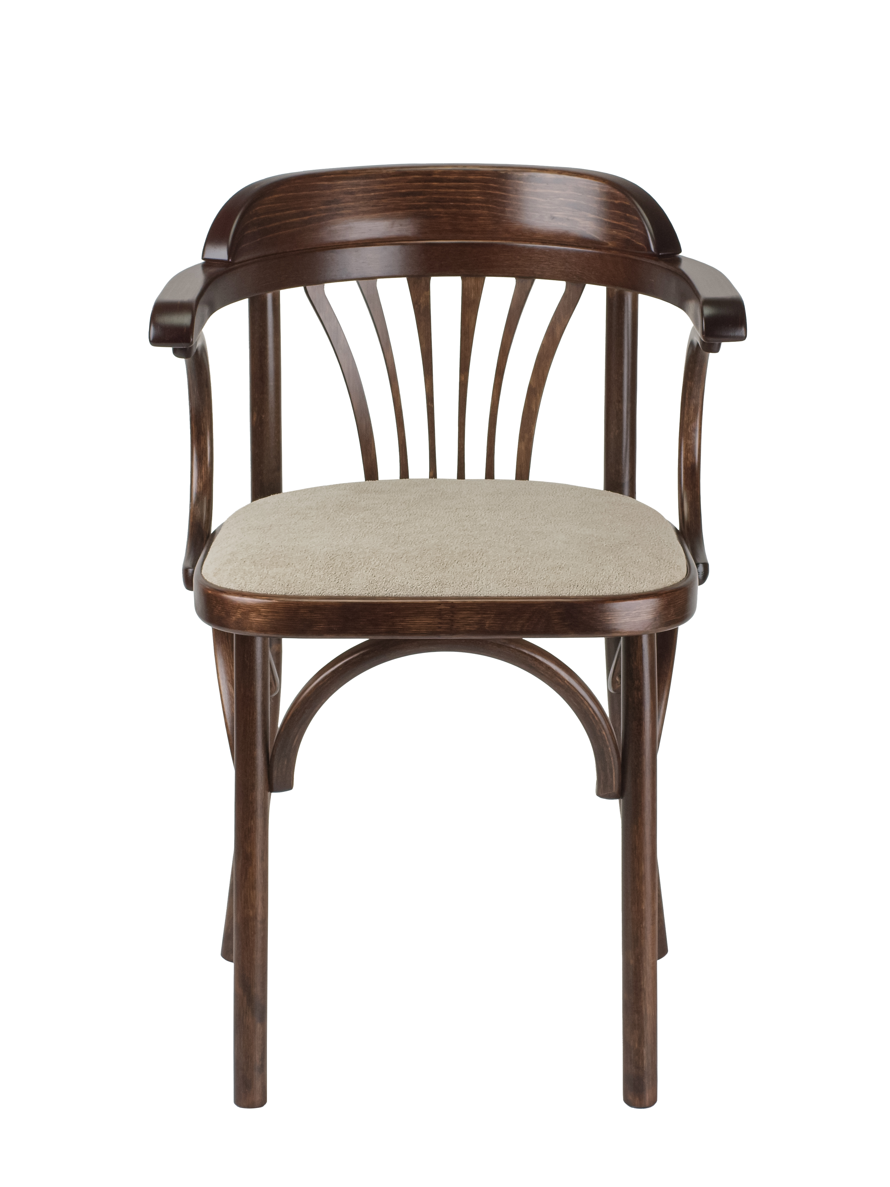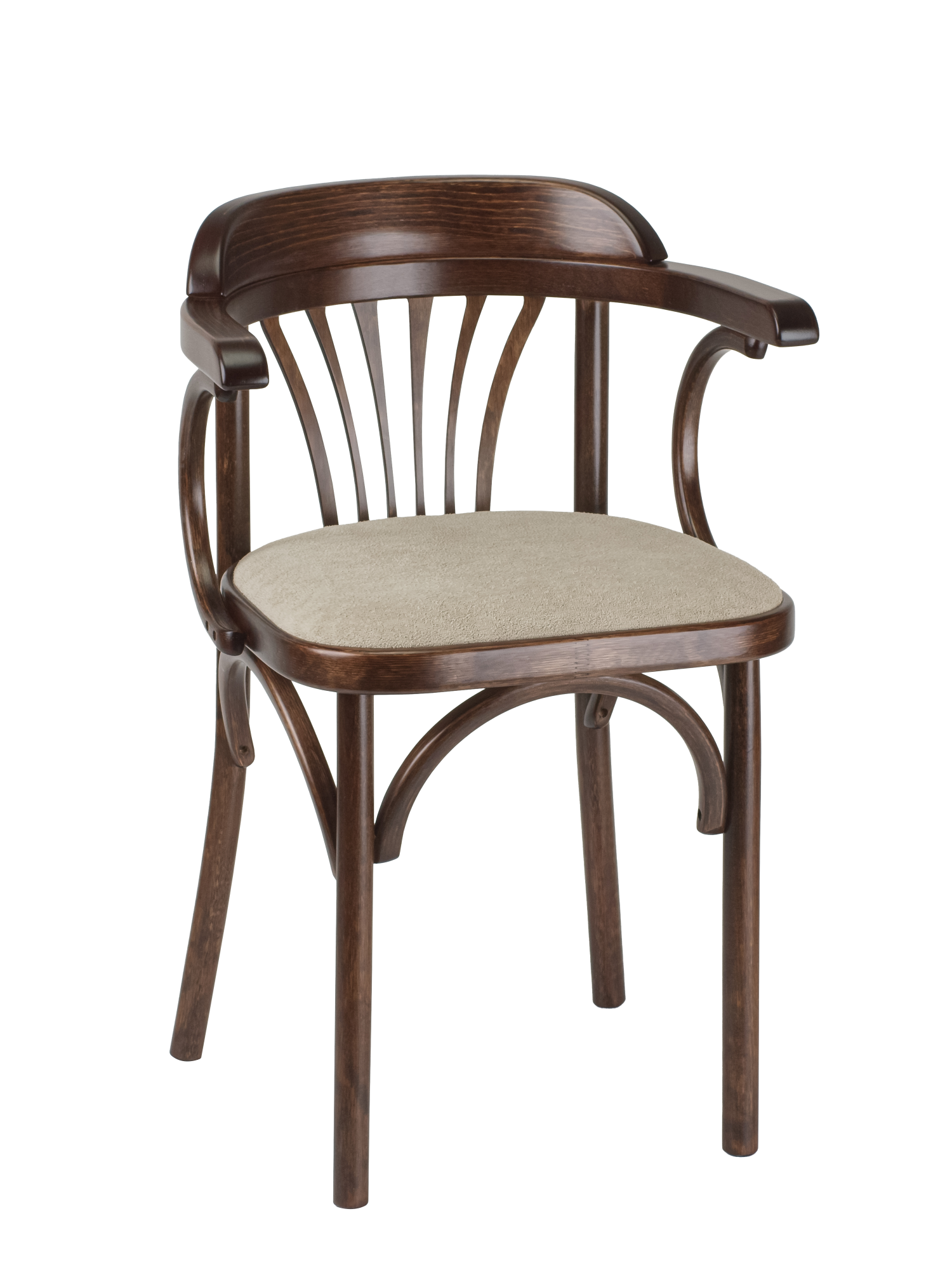 Мягкое сиденье из износостойкой ткани букле гарантирует максимальный комфорт, а удобные подлокотники позволяют с комфортом расположиться за любым столом. Прочная конструкция выдерживает нагрузку до 120 кг, что делает венский стул универсальным решением для всей семьи.